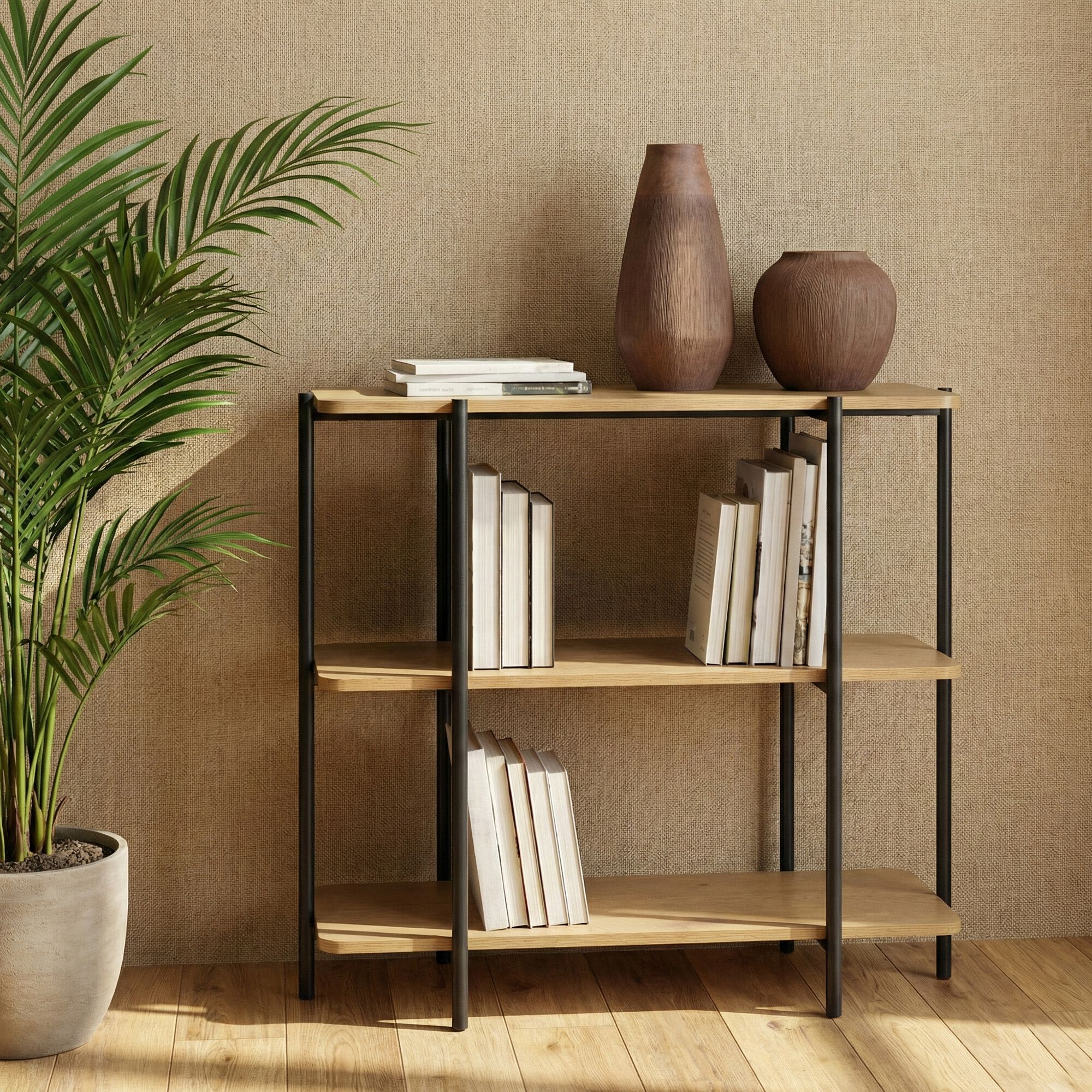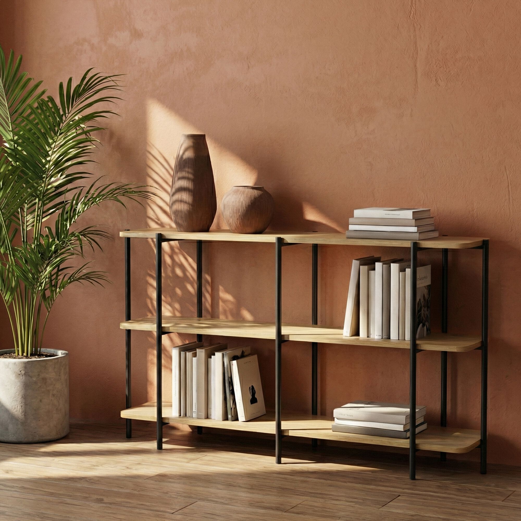 89% OFFADD TO CARTIZZY - Bibliothèque en bois et fer noir l120cm - bois clair