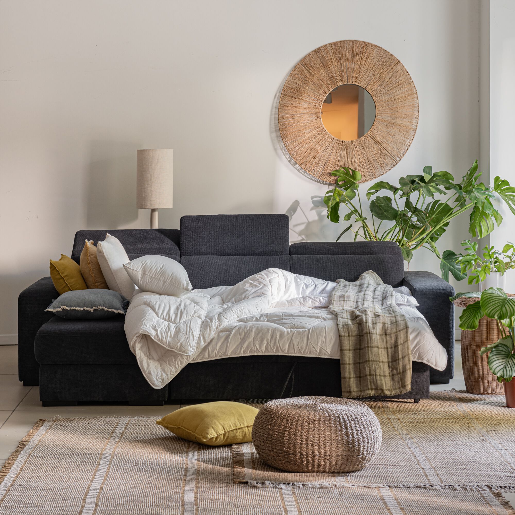 80% OFFADD TO CARTORIGANO - Canapé d'angle convertible en tissu- beige