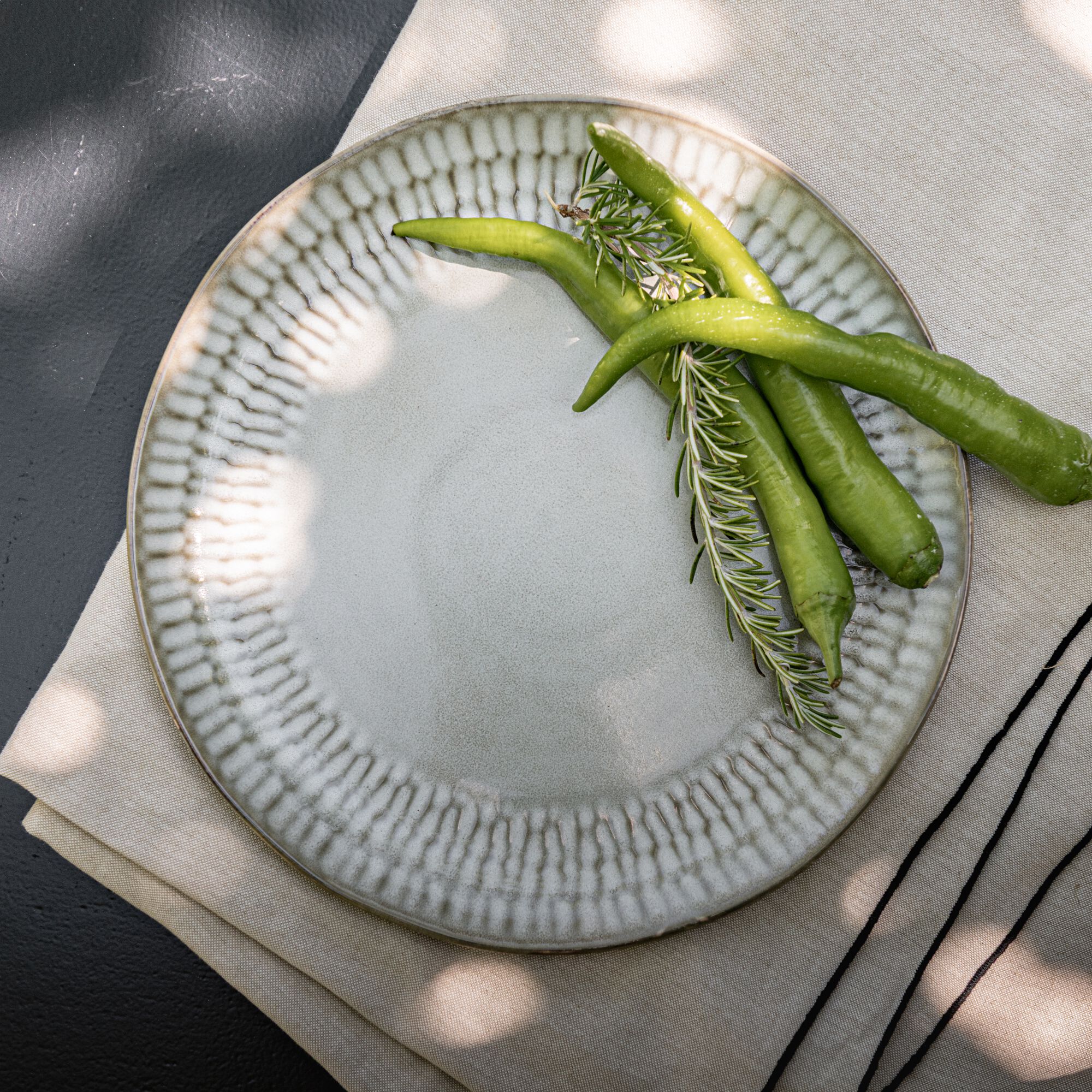 SELMA - Assiette plate en faïence D28cm - vert cèdre