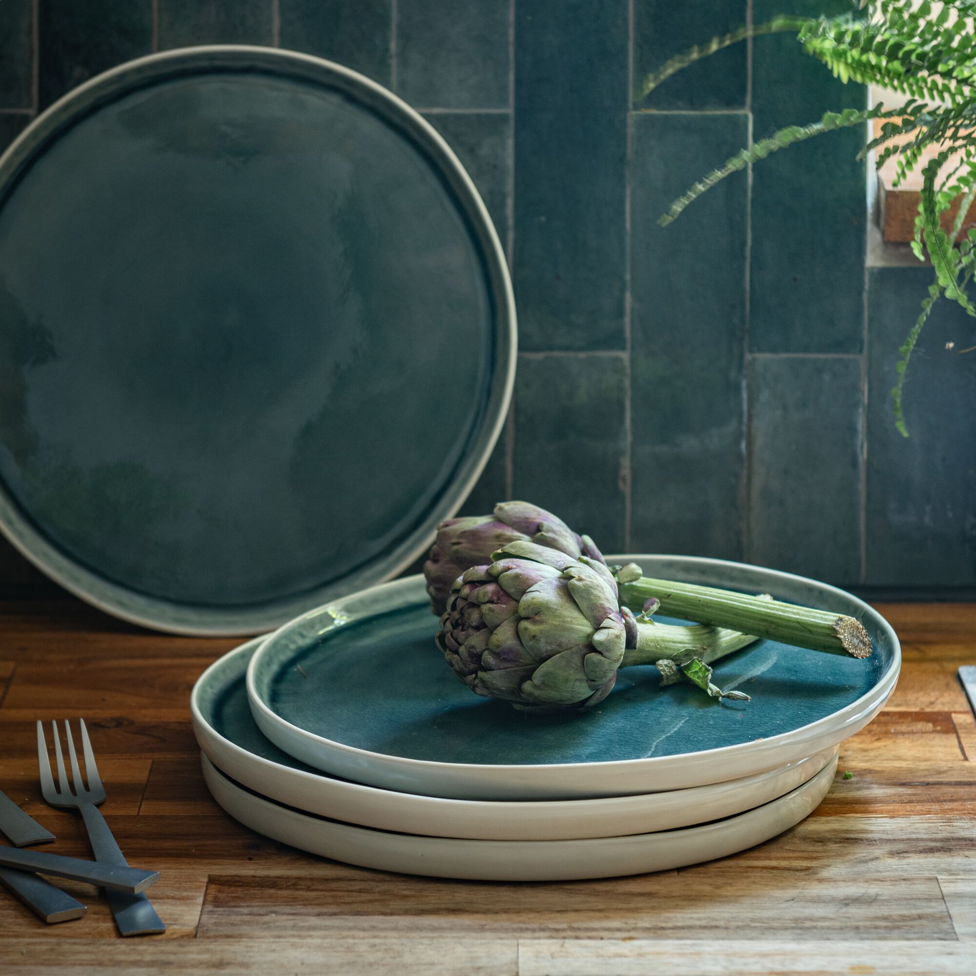 JADE - Assiette plate en grès D27cm - vert cèdre