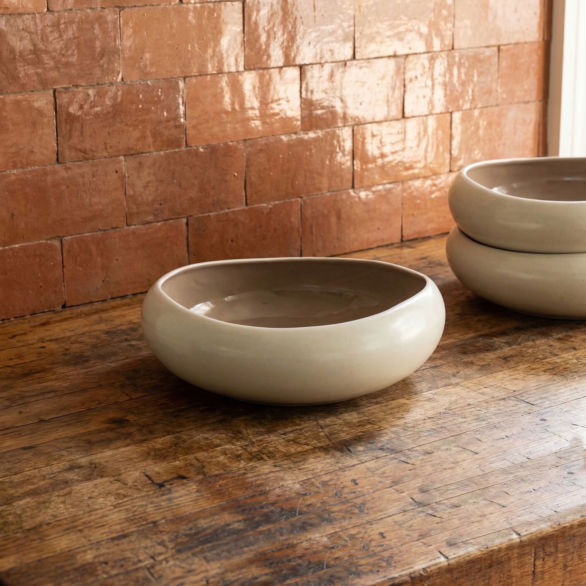 ORBIA - Assiette creuse en grès - beige