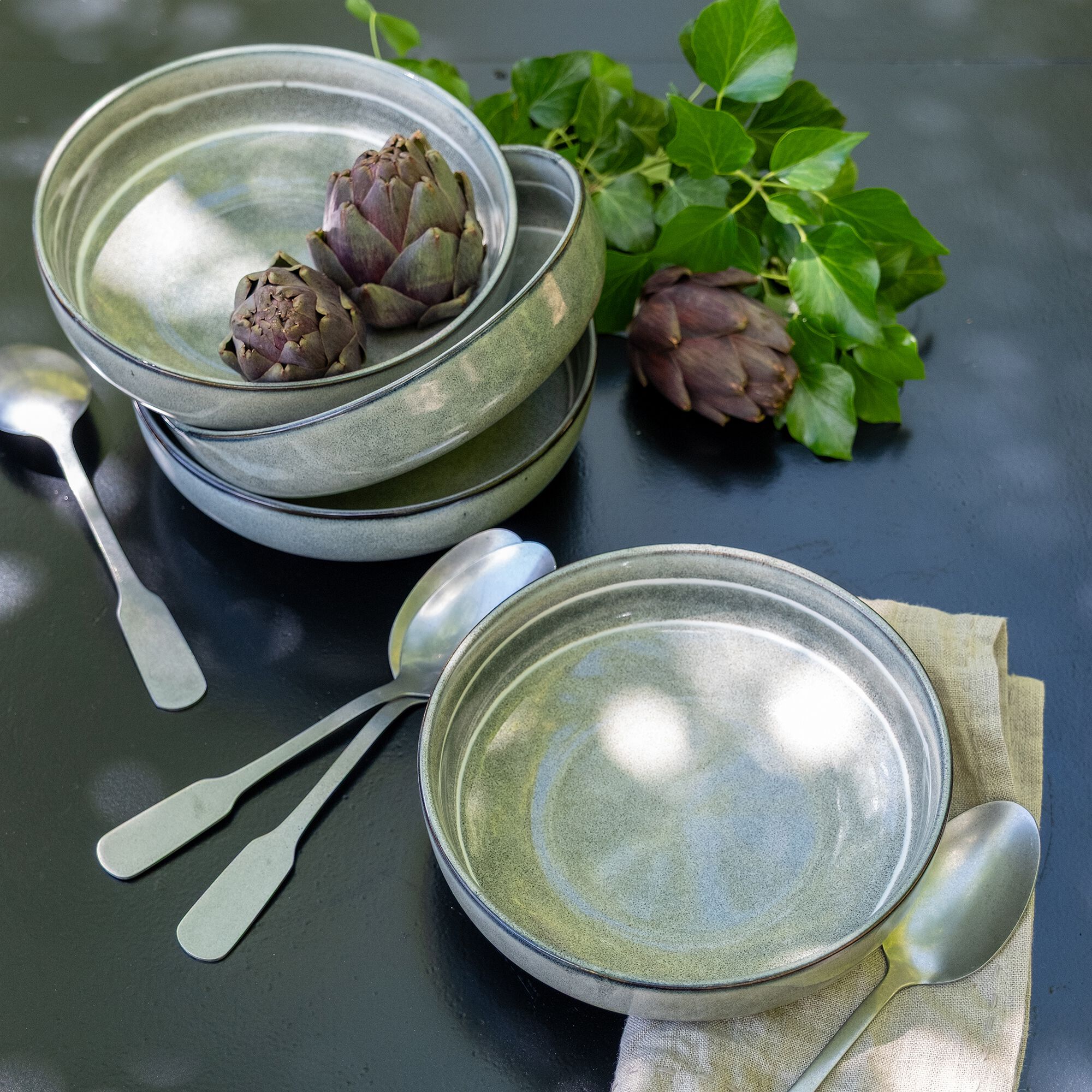 JADE - Assiette à dessert en grès D20,5cm - vert cèdre