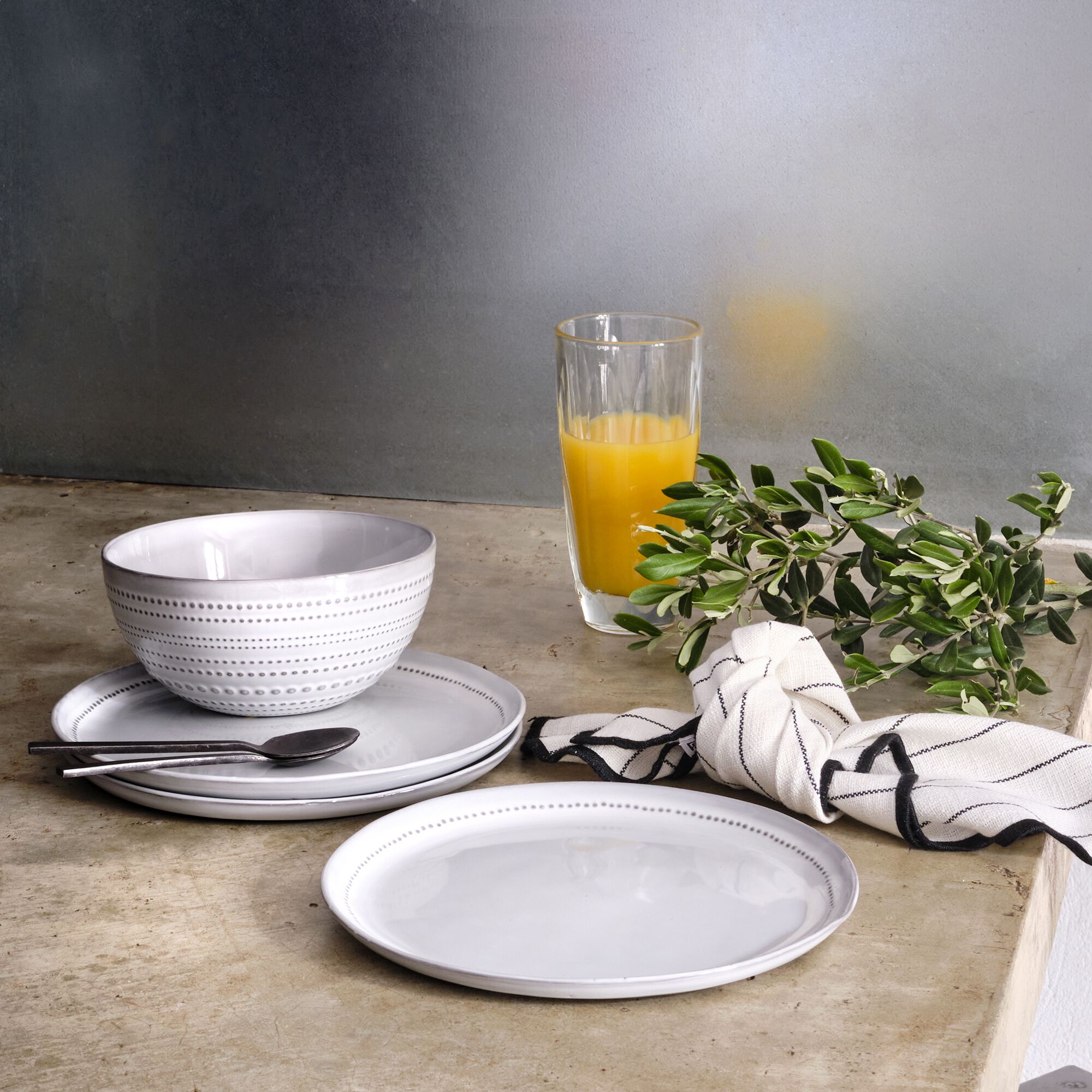 HALIMA - Assiette plate en faïence D26cm - blanc ventoux