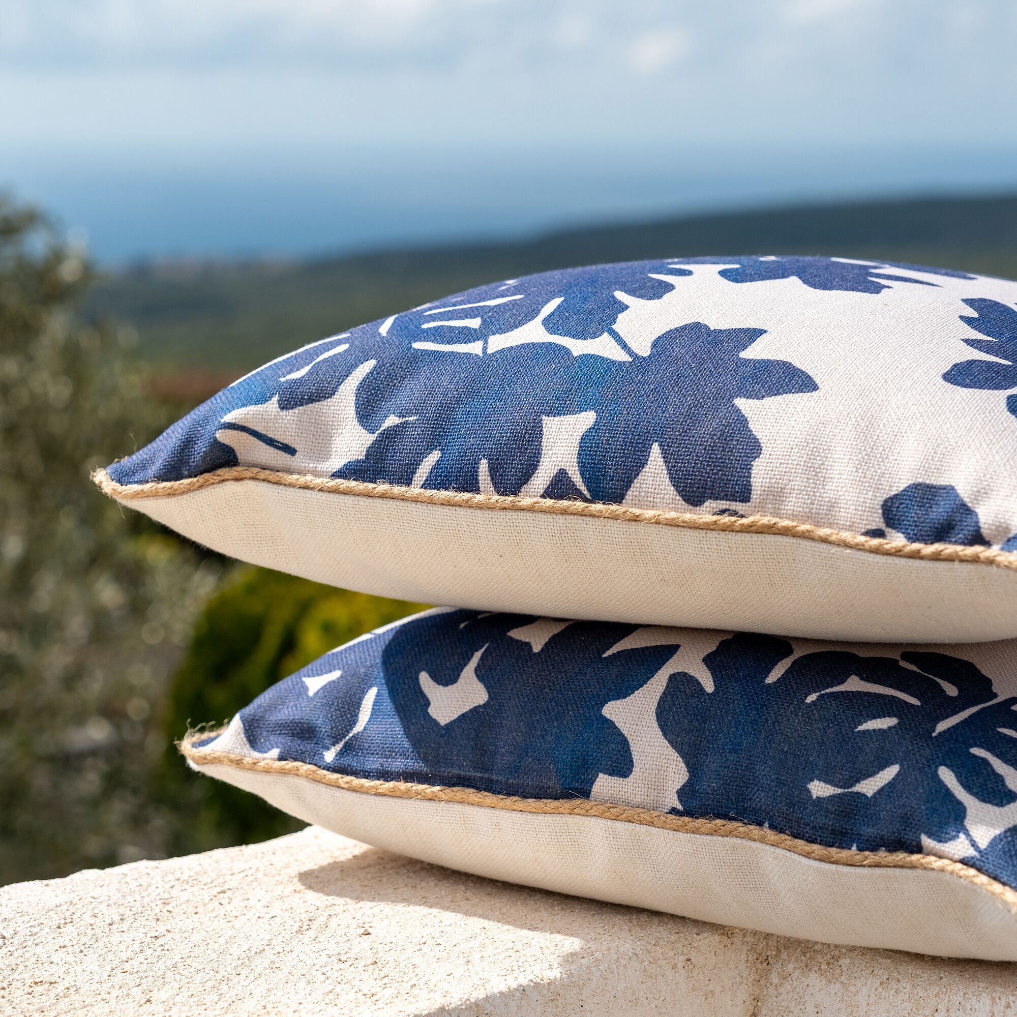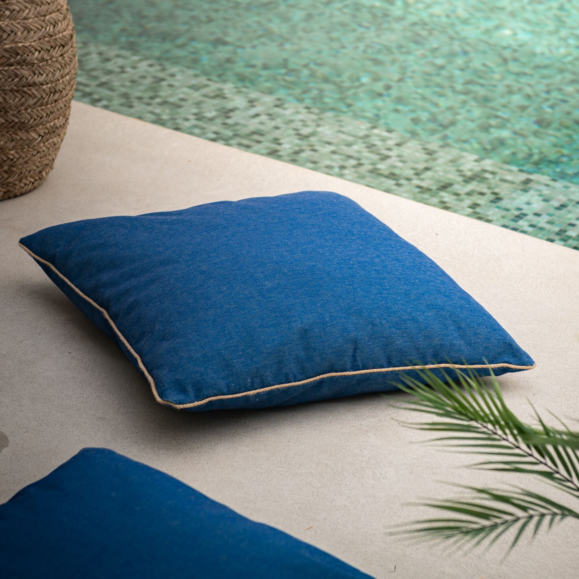MARSA - Coussin à passepoil en tissu 70x70cm - bleu marine
