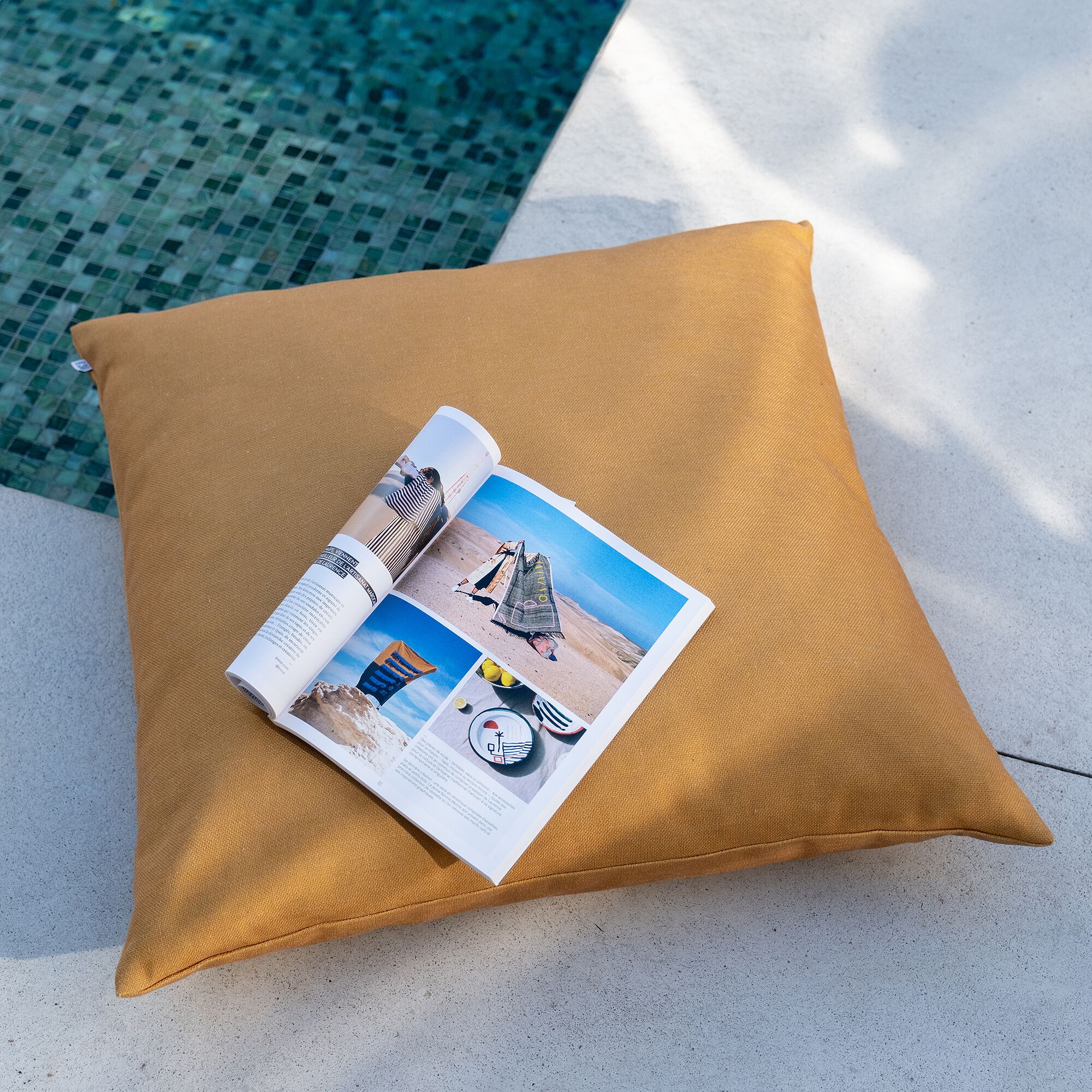 DEMNATI - Coussin de jardin en tissu - jaune argan 70x70cm