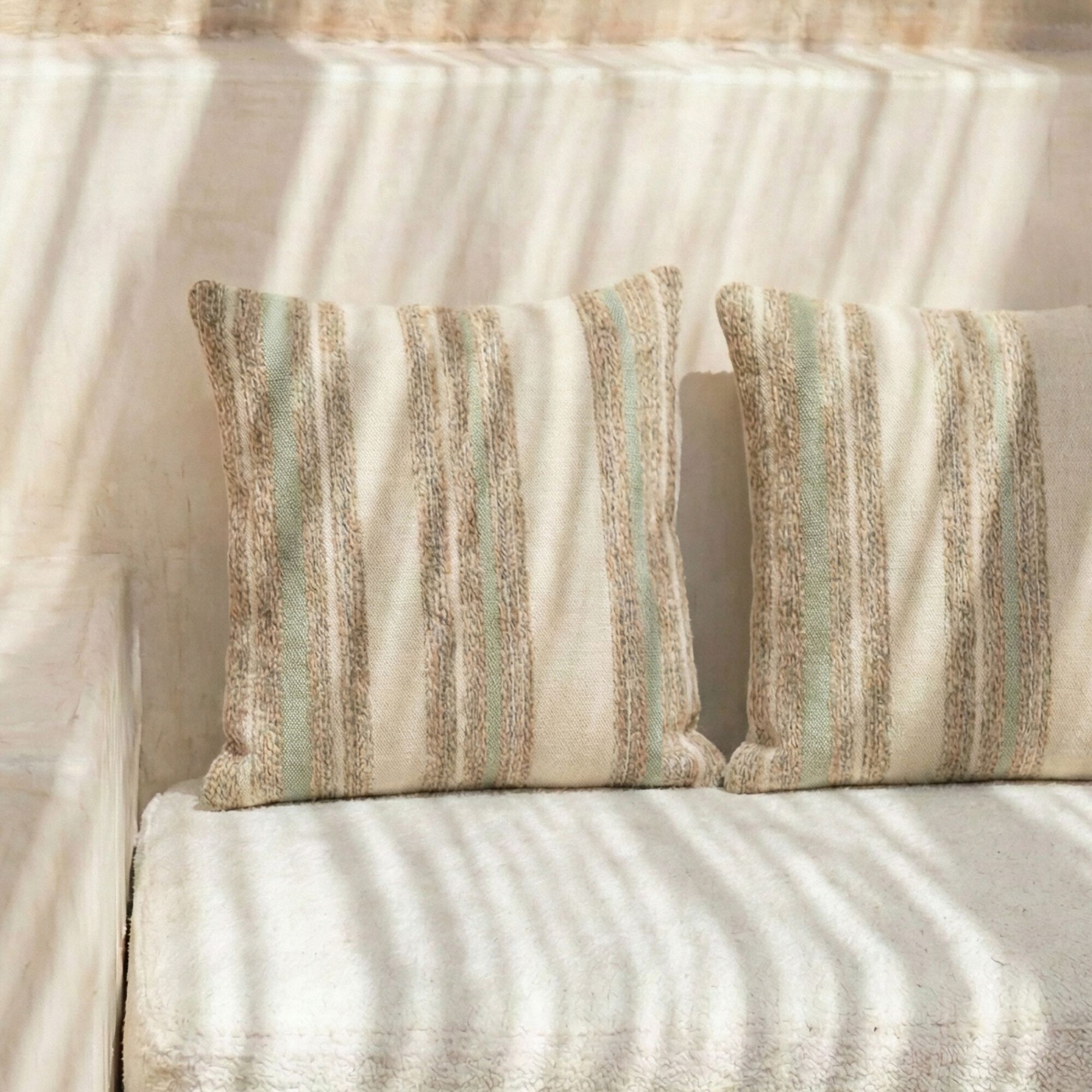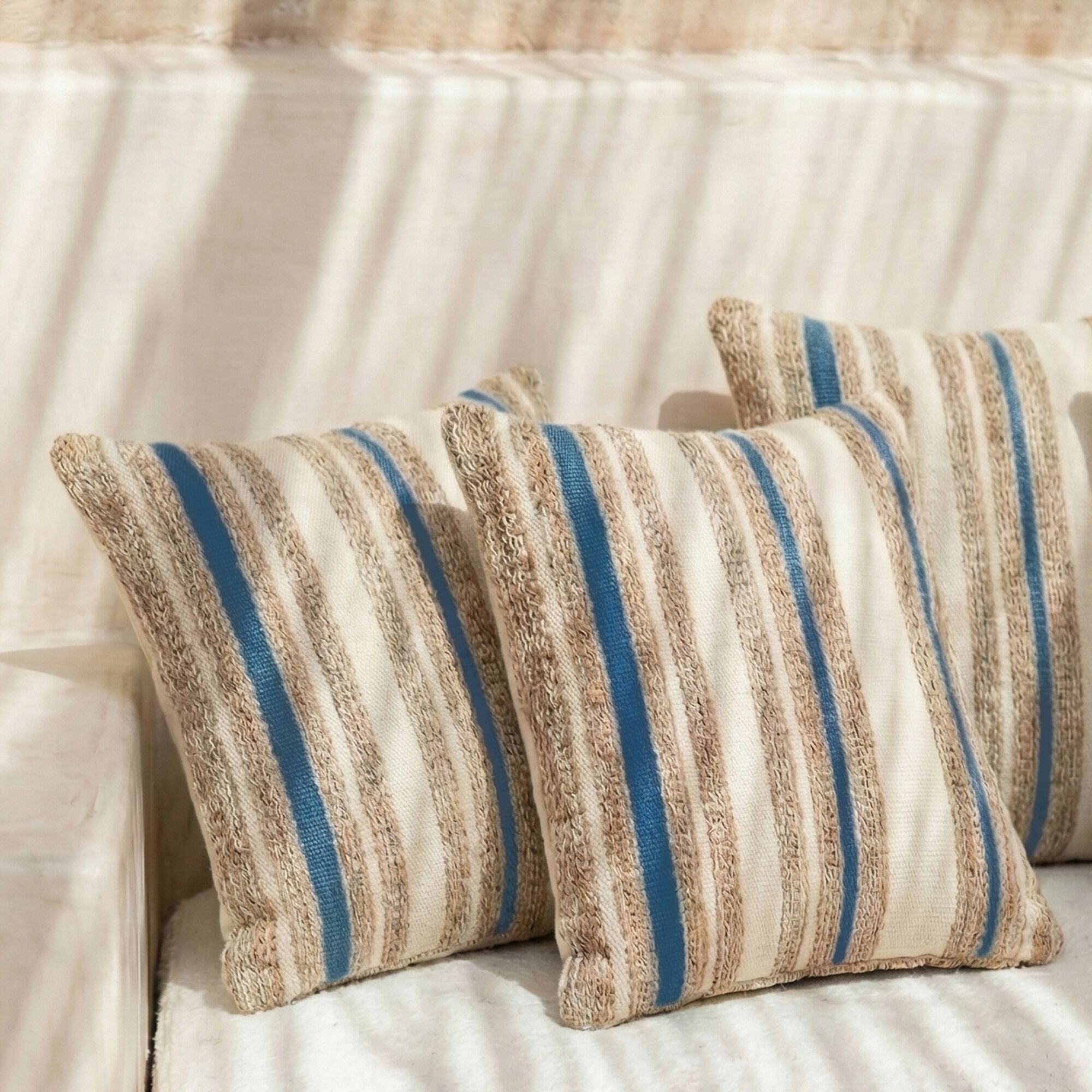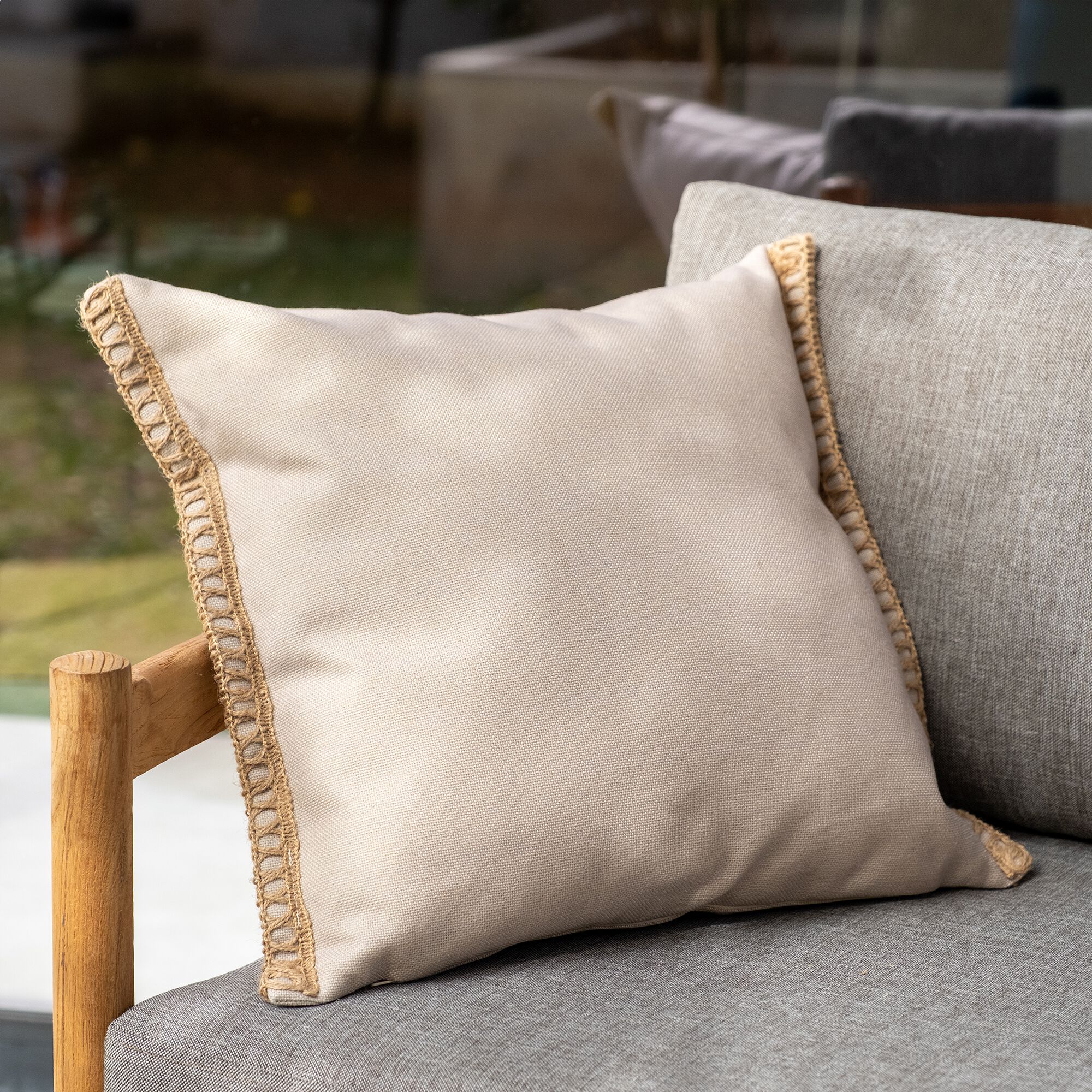 LEHRIA - Coussin de jardin à rayure 45x45cm - naturel
