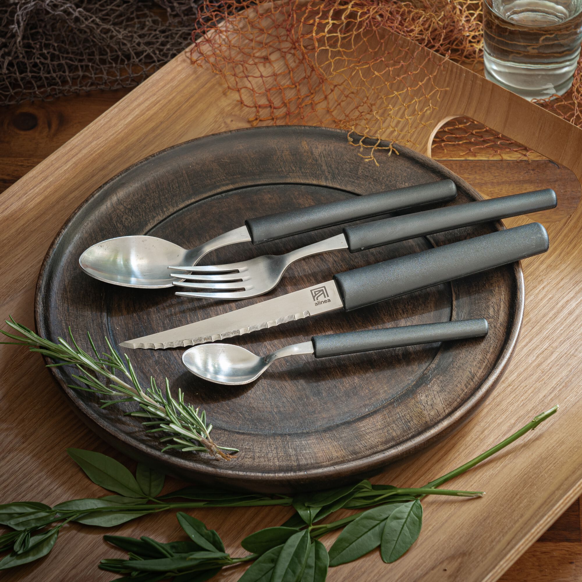 MORFEU - Ménagère 16 pièces en inox finition PVD - noir mat