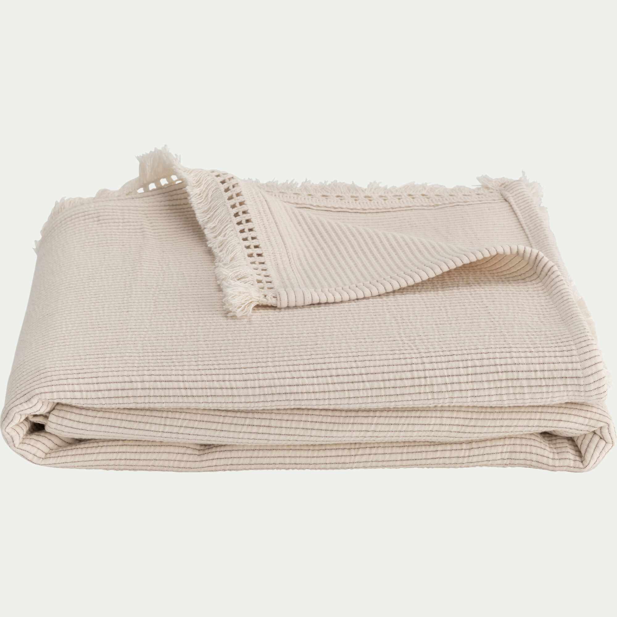 KHANTA - Couvre-lit en coton frangé 230x250cm - beige
