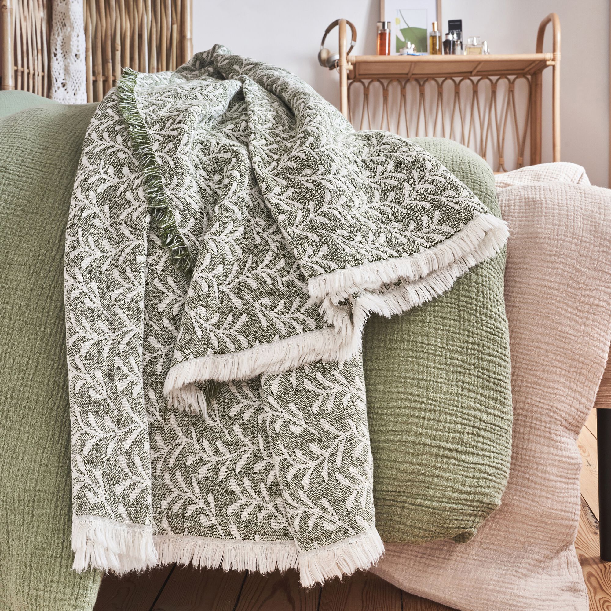 PIASTRE - Couvre lit finition croquet en coton 220x240cm - vert