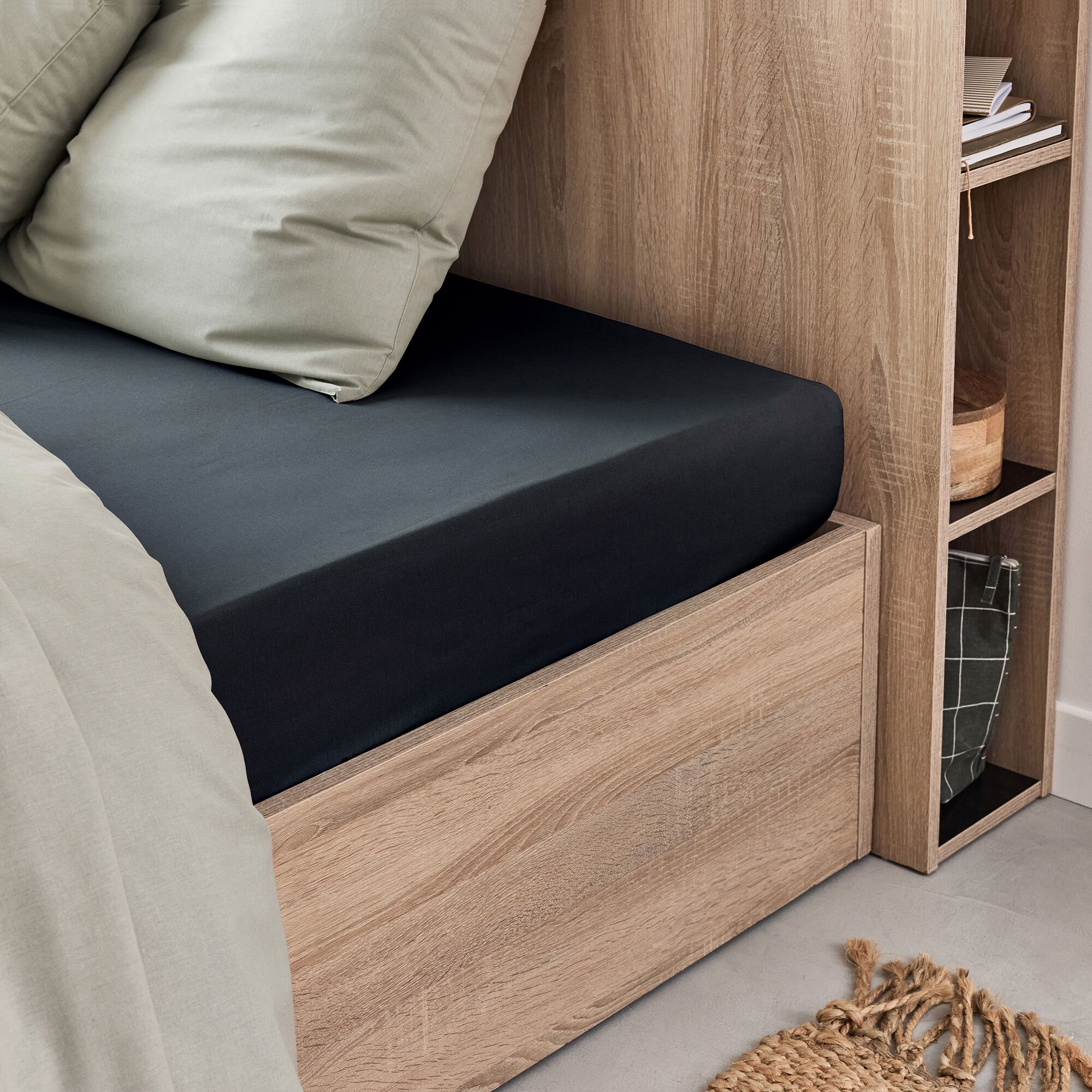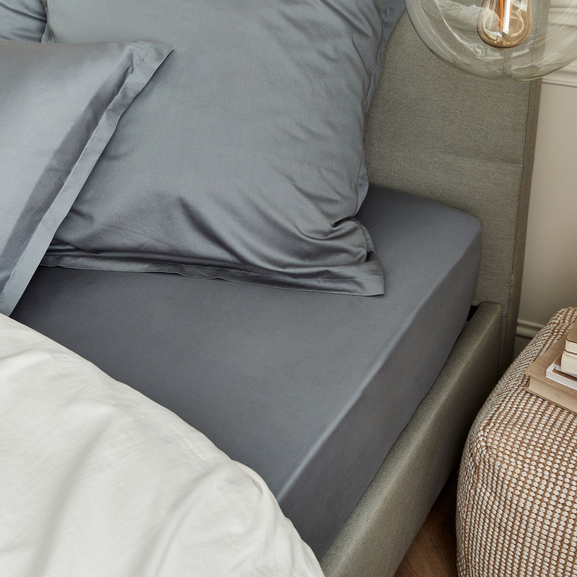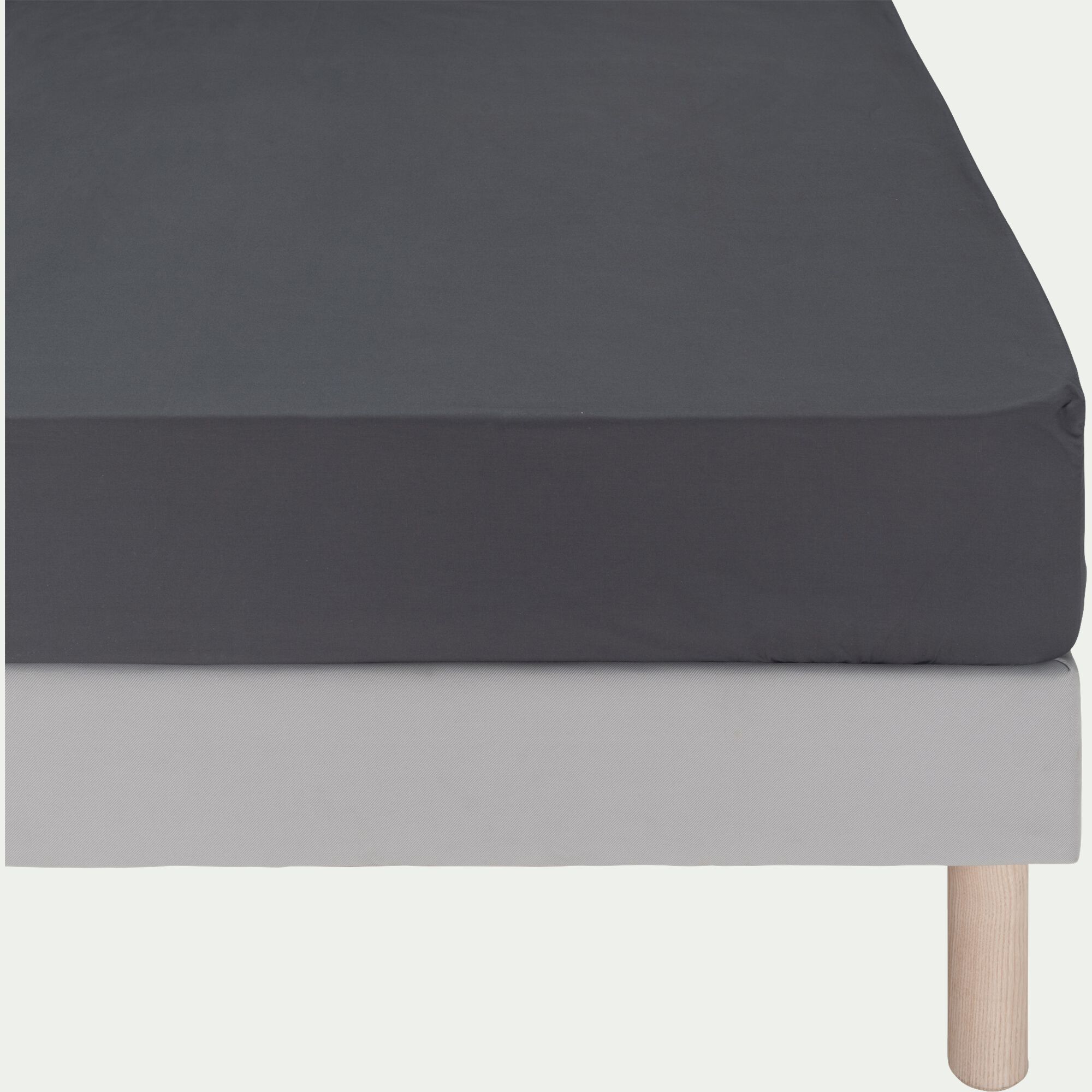 EOLI - Drap housse en coton 140x200cm B40cm - gris vésuve