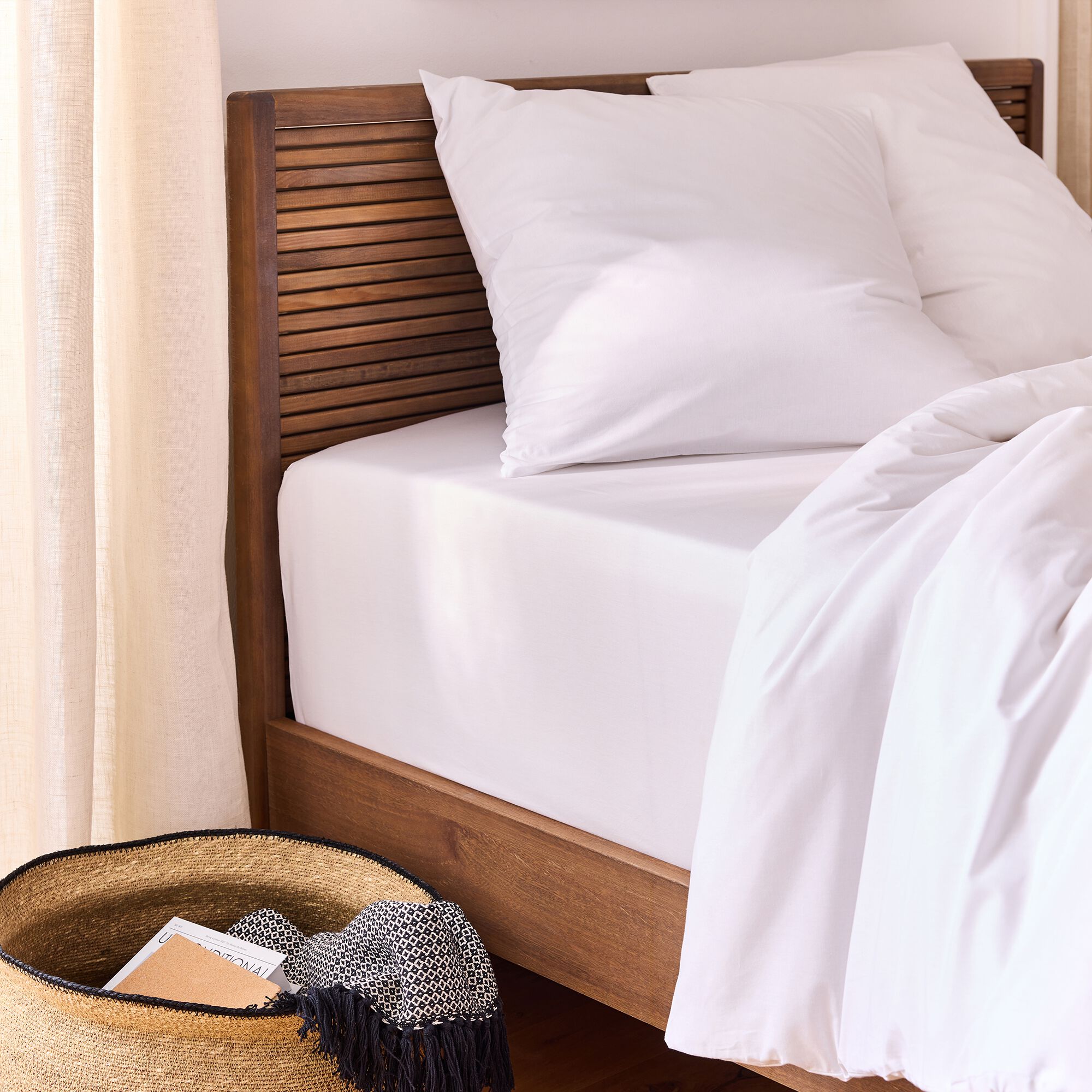 EOLI - Drap housse en coton 140x200cm B40cm - blanc optique