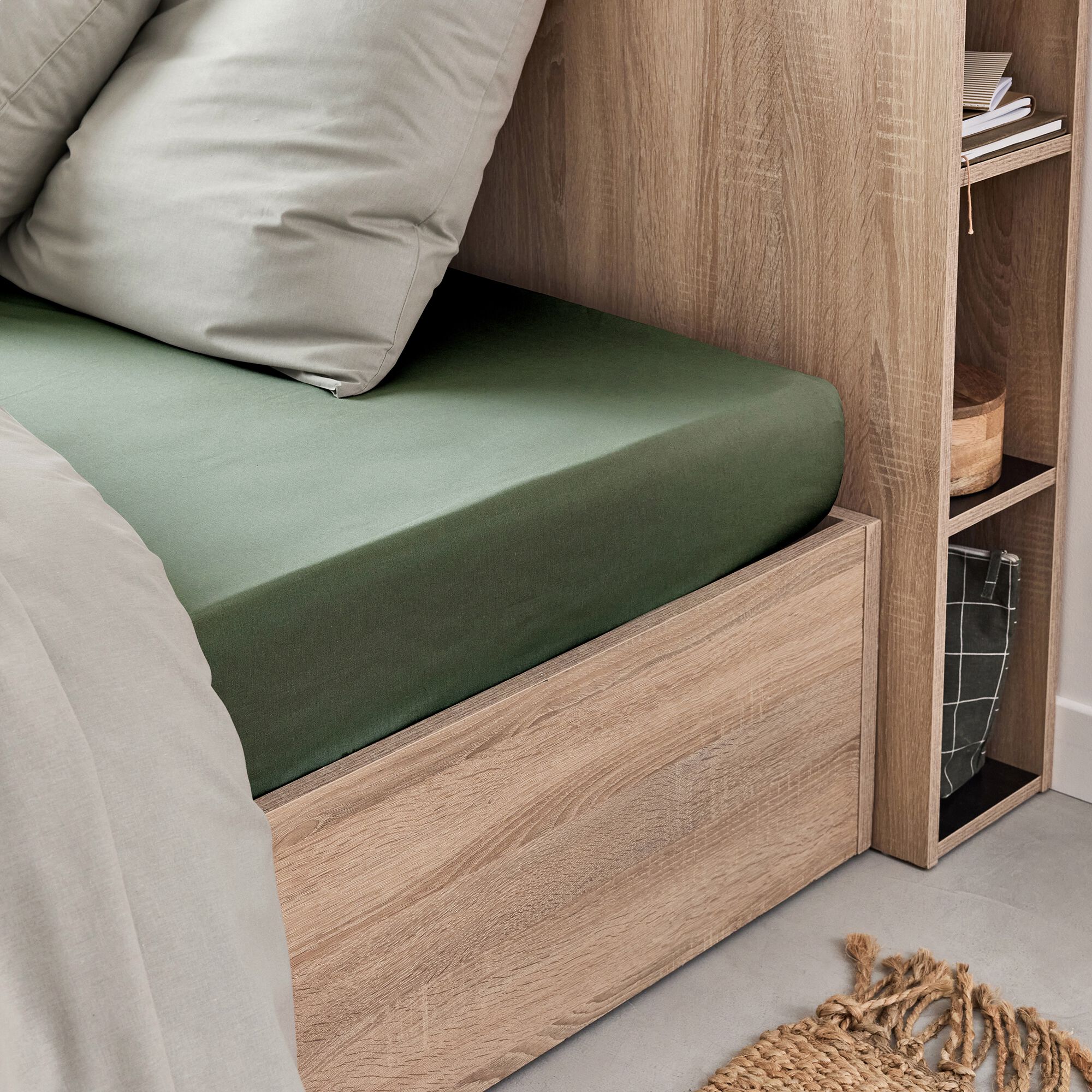 EOLI - Drap housse en coton 140x200cm B40cm - vert cèdre