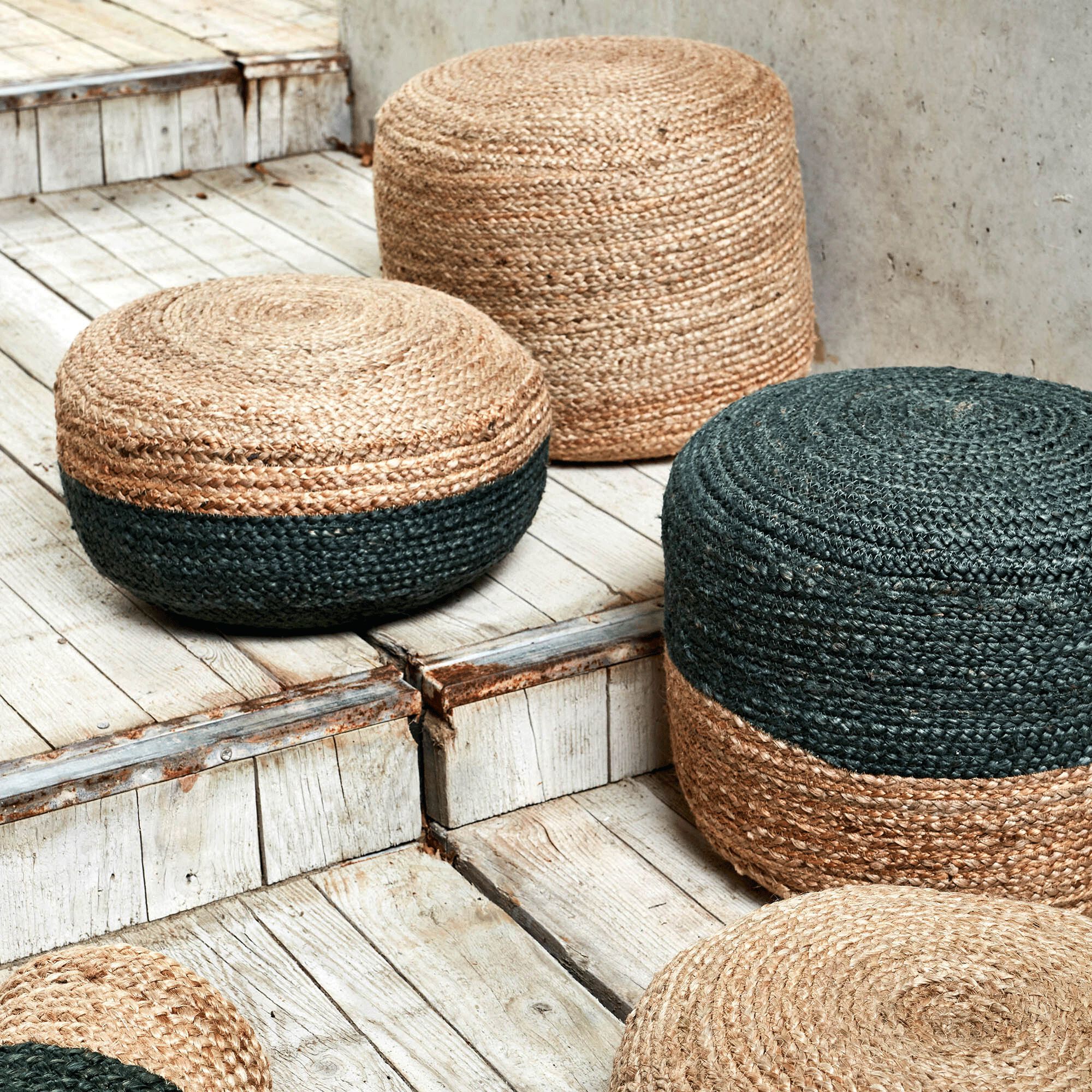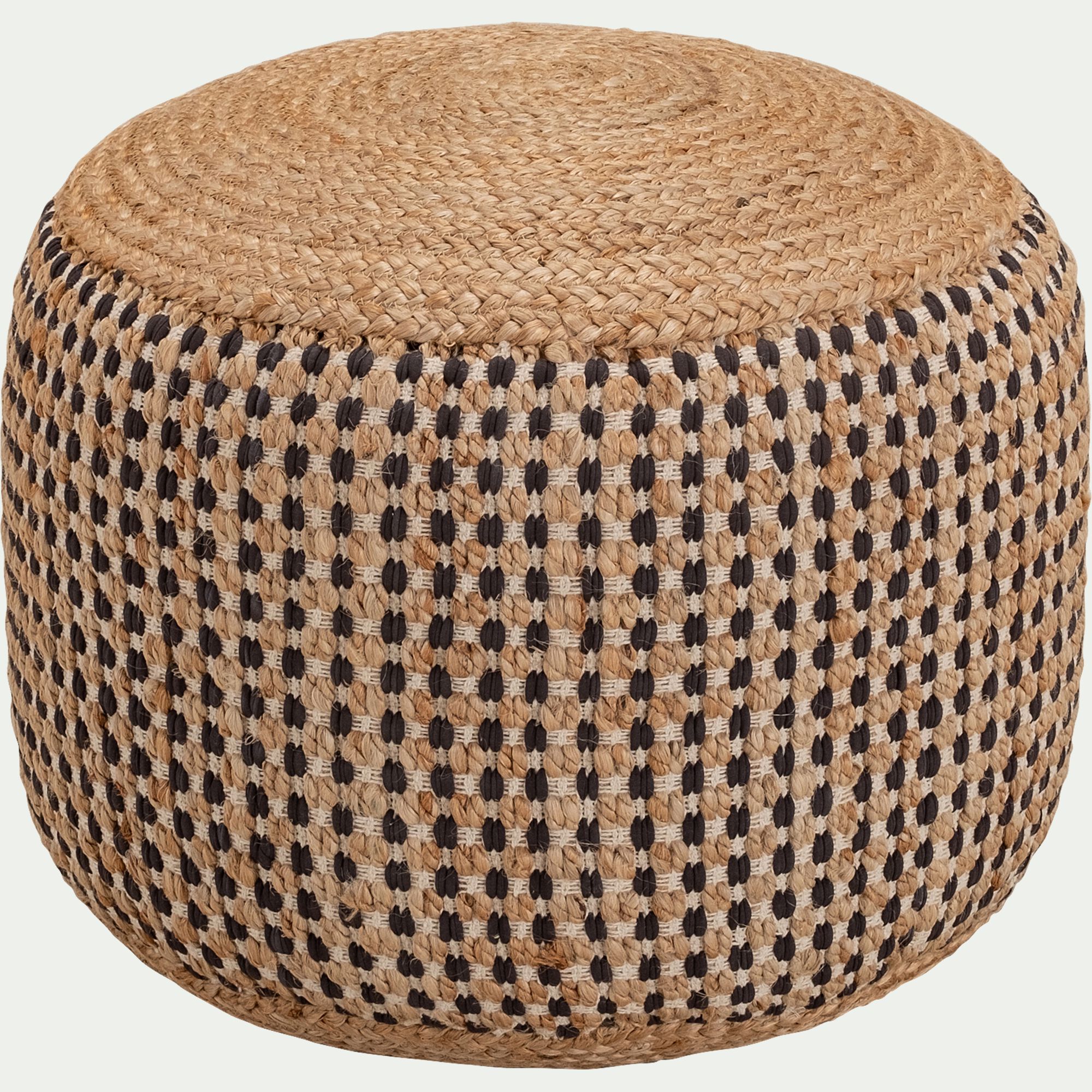 AFAR - Pouf rond en jute et coton - noir D50xH45cm