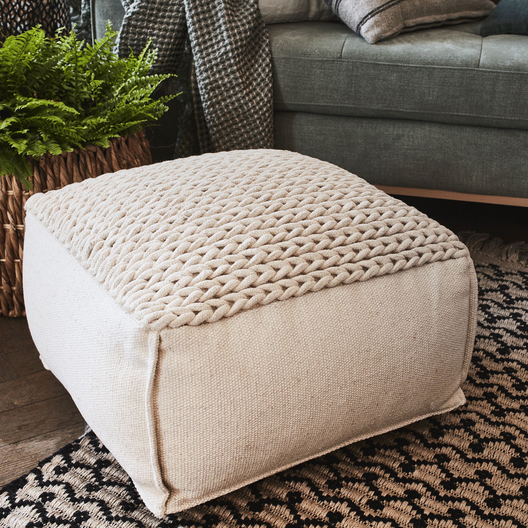 IAN - Pouf cubique en coton - beige D50xH28cm