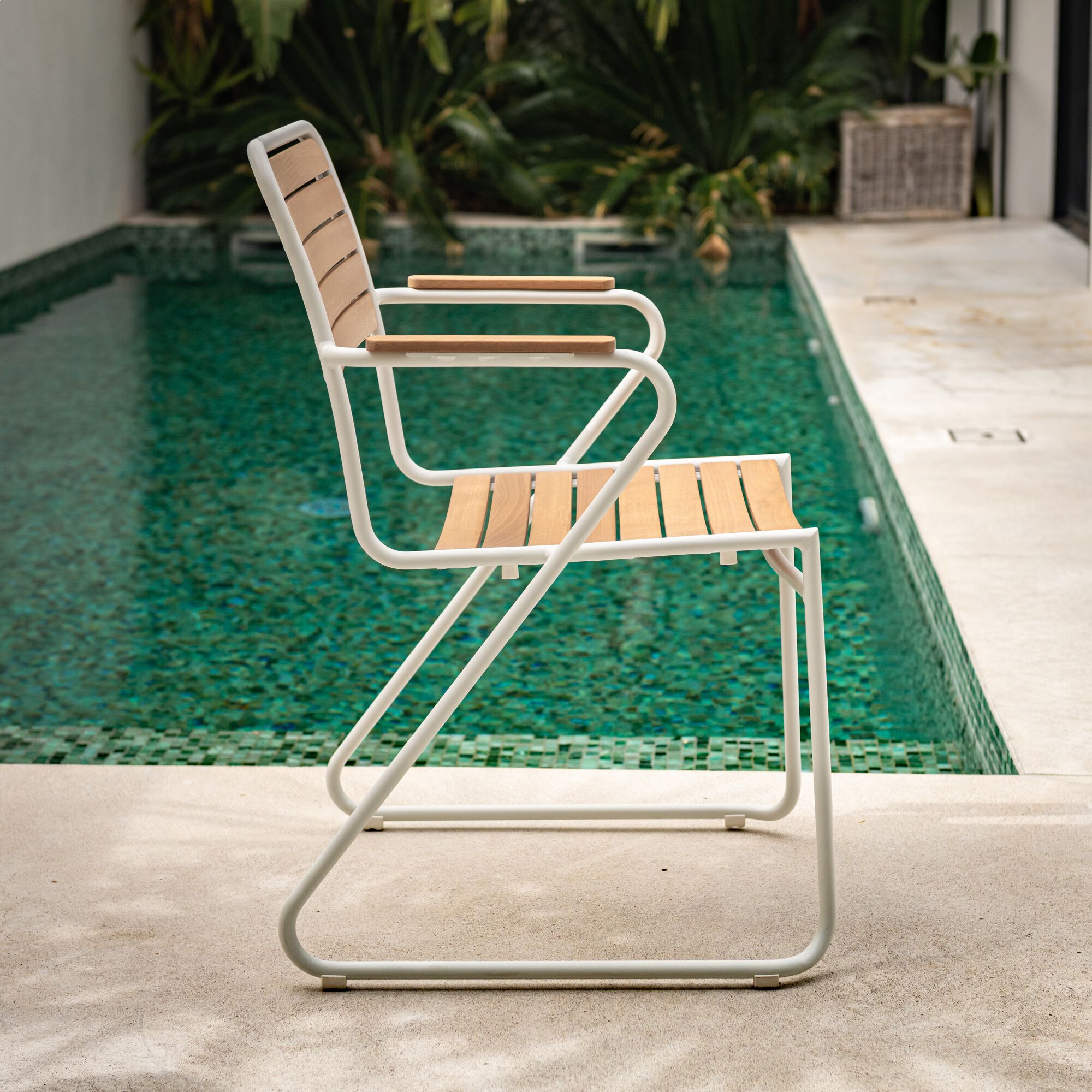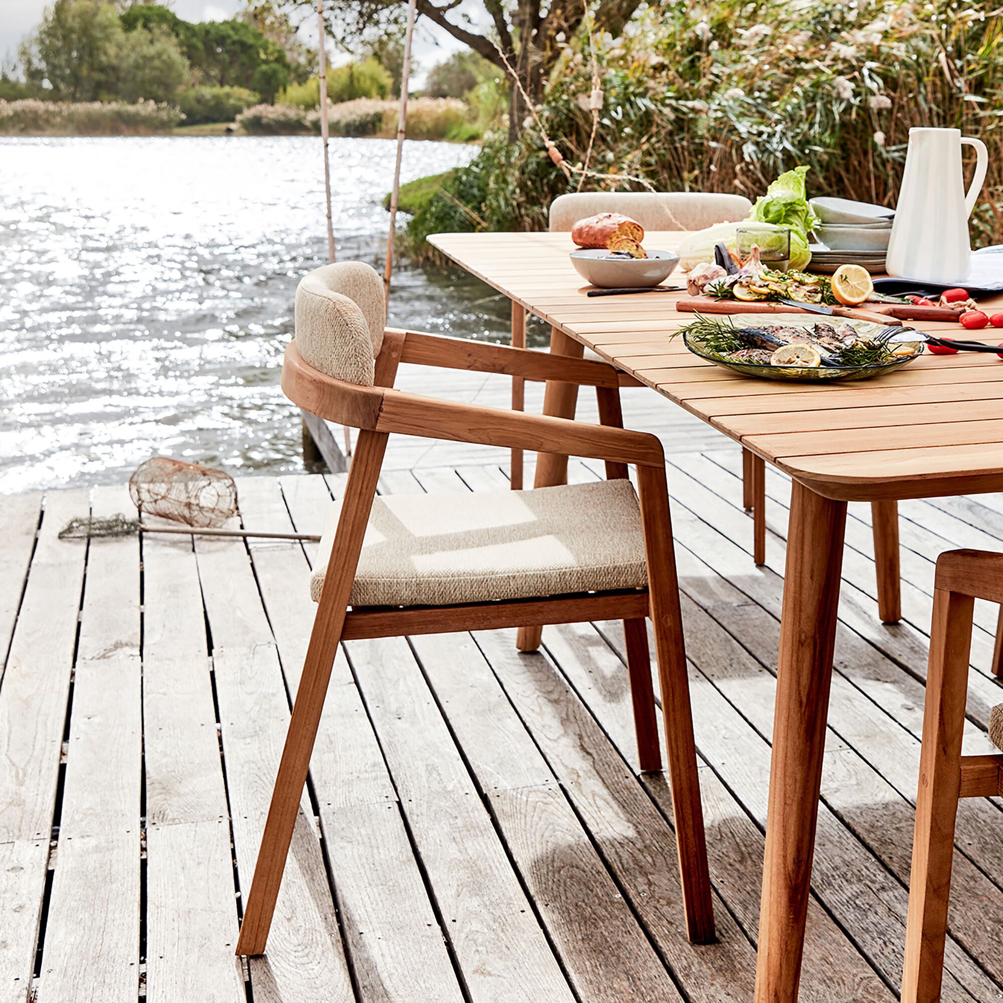 EVENOS - Chaise de jardin avec accoudoirs en teck massif - bois foncé
