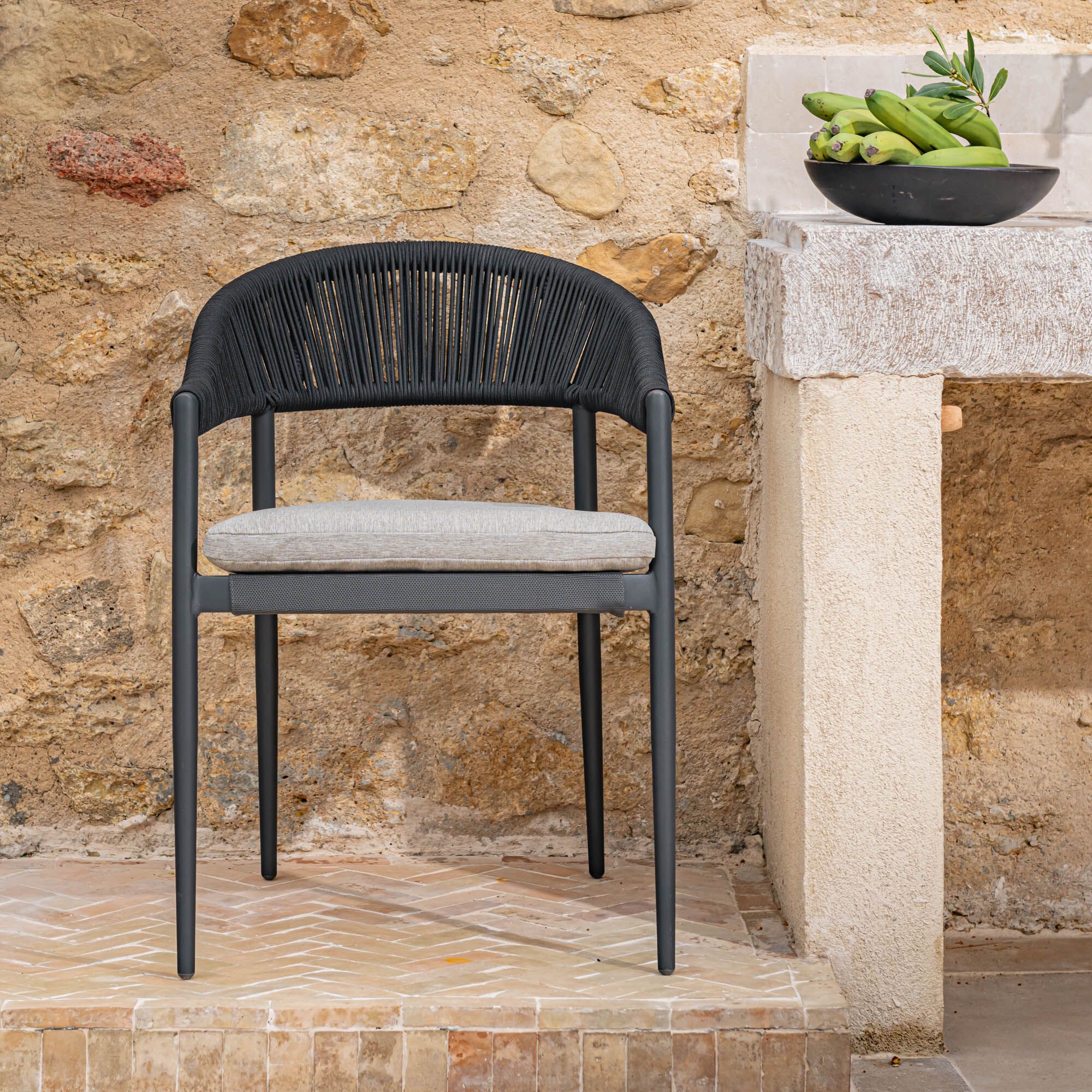 LAZZARO - Chaise de jardin avec accoudoirs en aluminium - noir