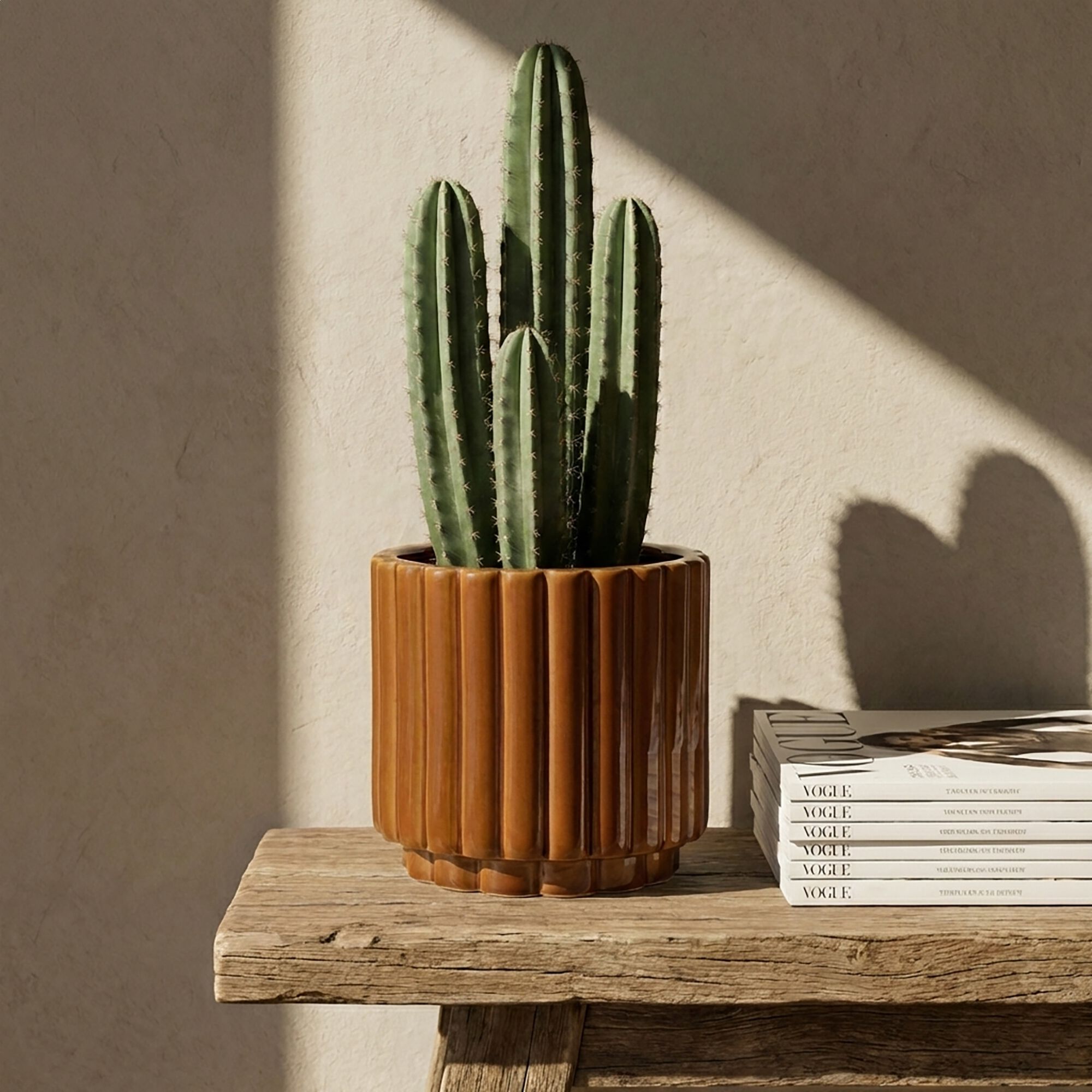 YULI - Cache-pot en poudre de calcaire D16cm - marron