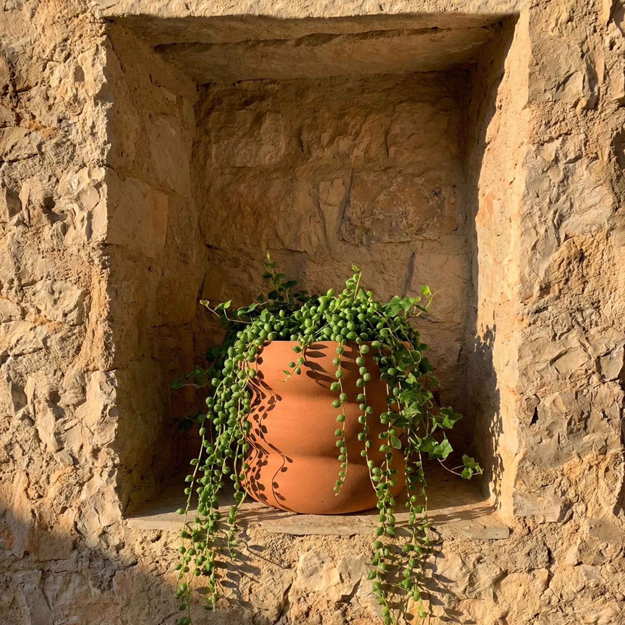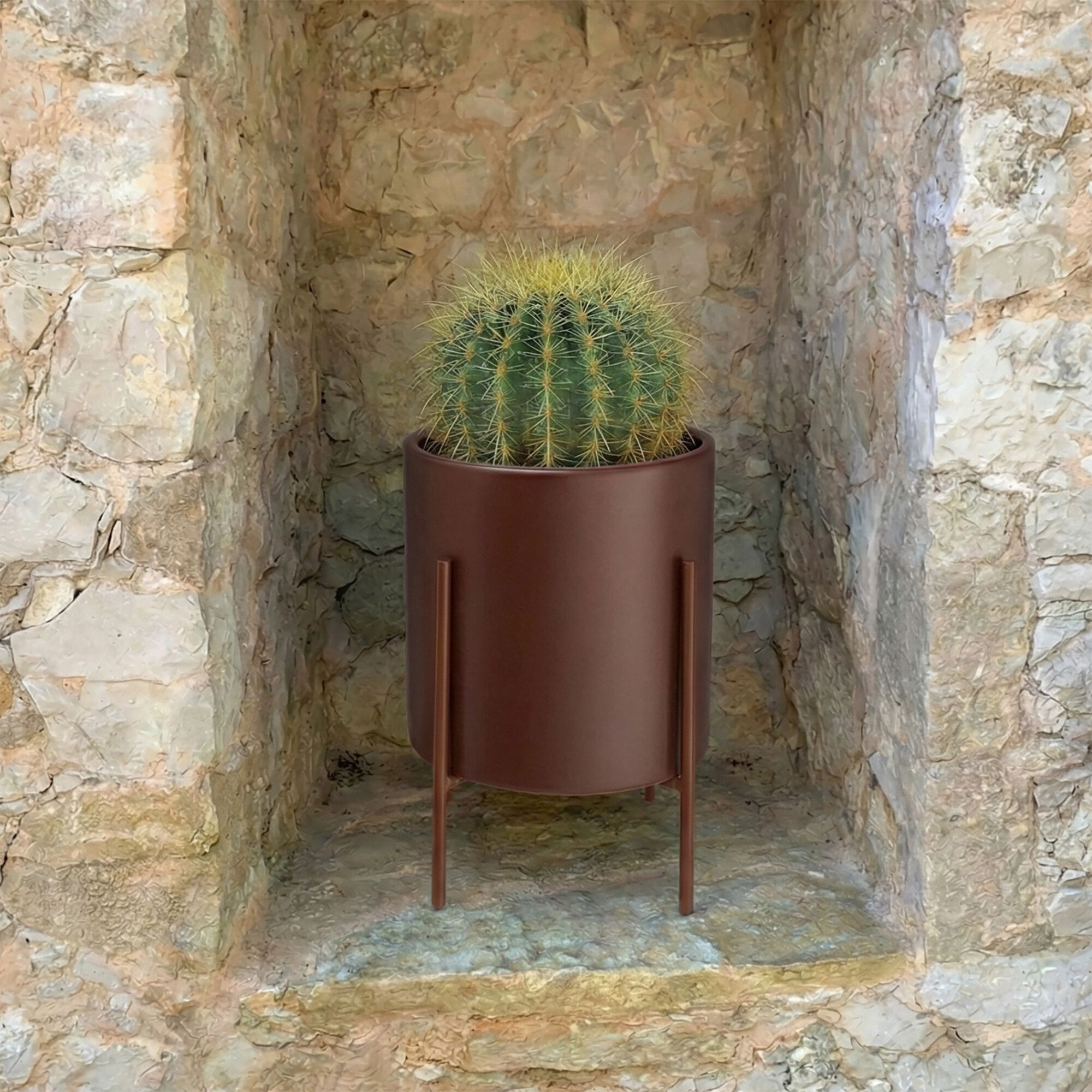 FAELAN - Cache-pot en dolomite D12cm - rouge terracotta