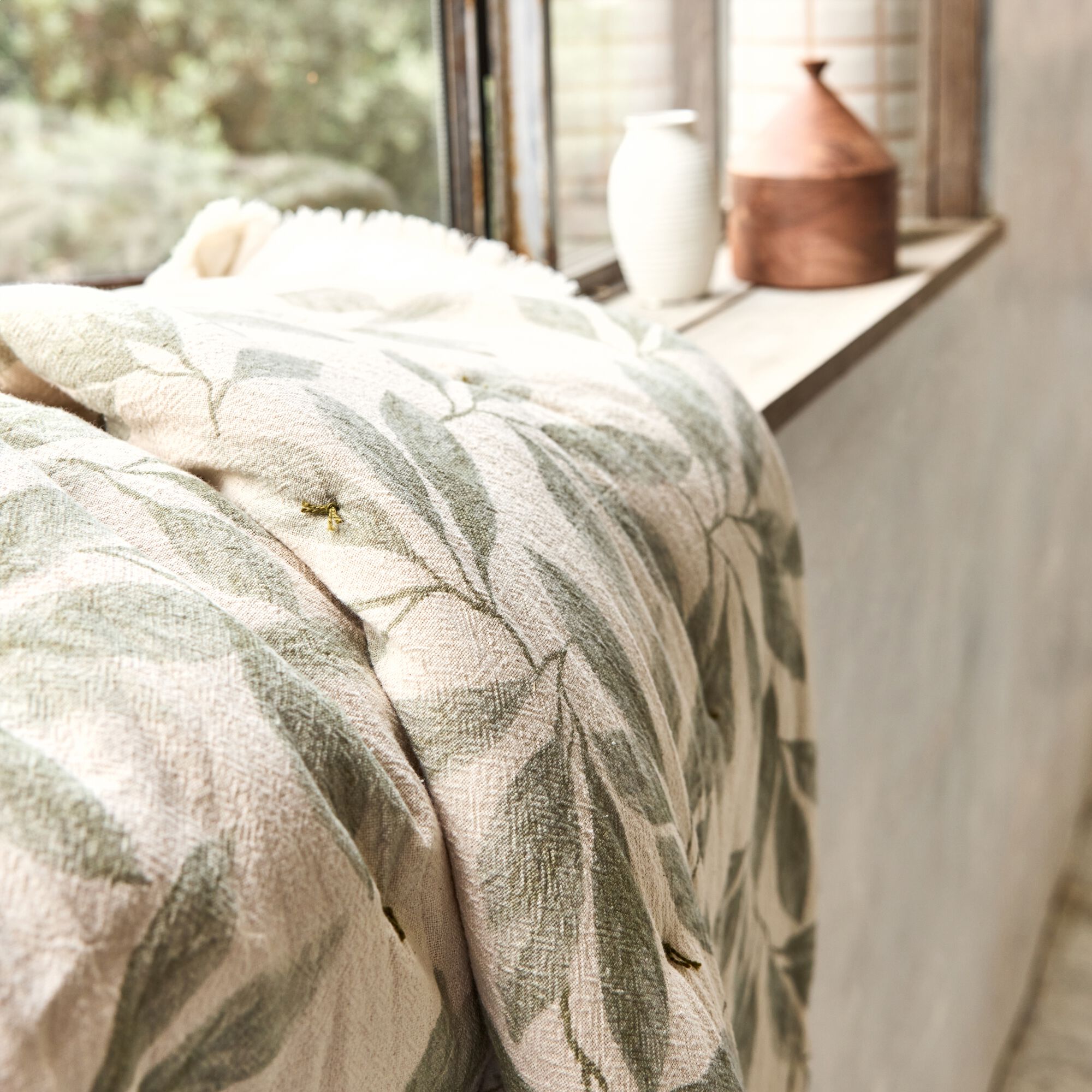 ALLORO - Edredon en coton motif végétal 100x180cm - beige