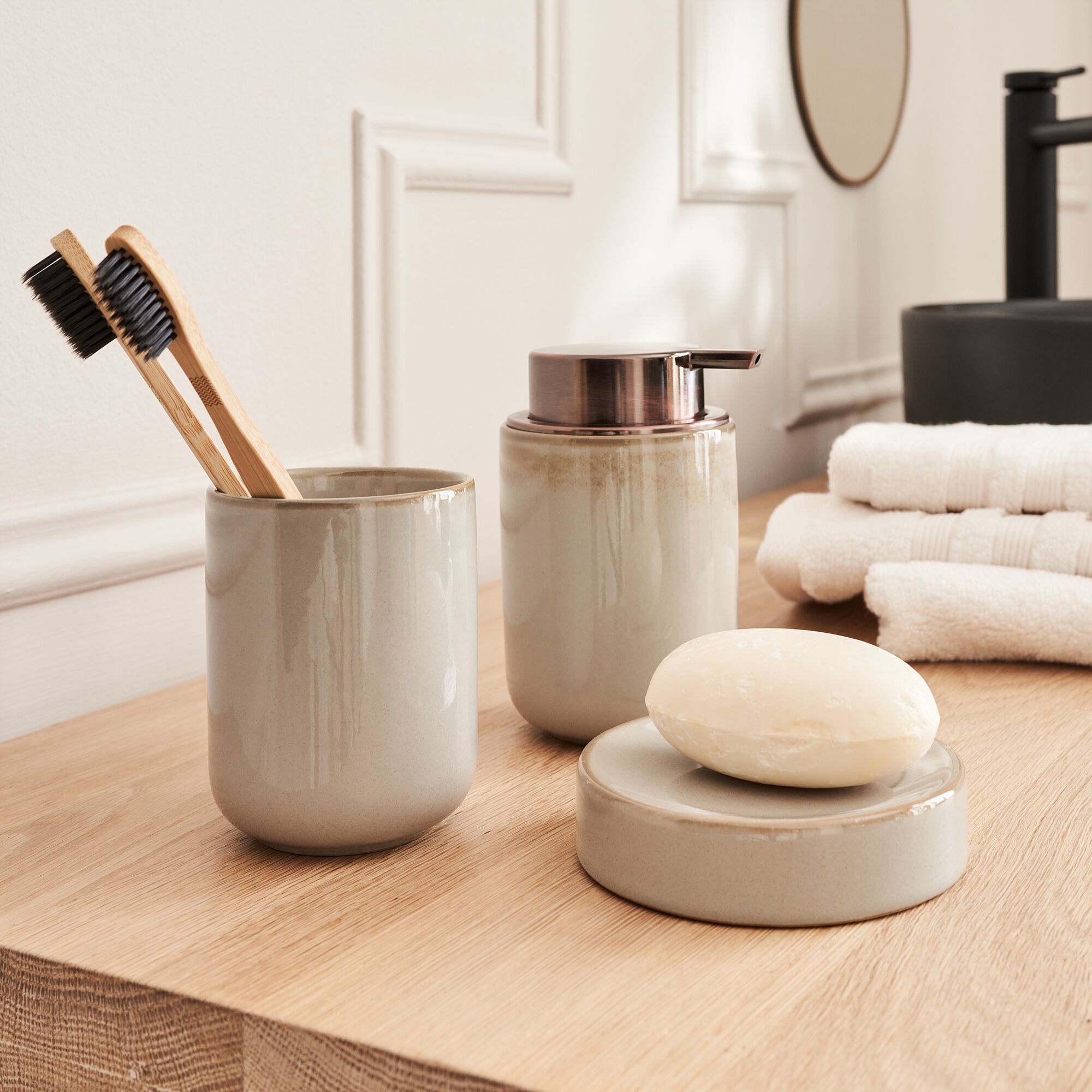 DIVI - Set de salle de bain en grès - noir et blanc