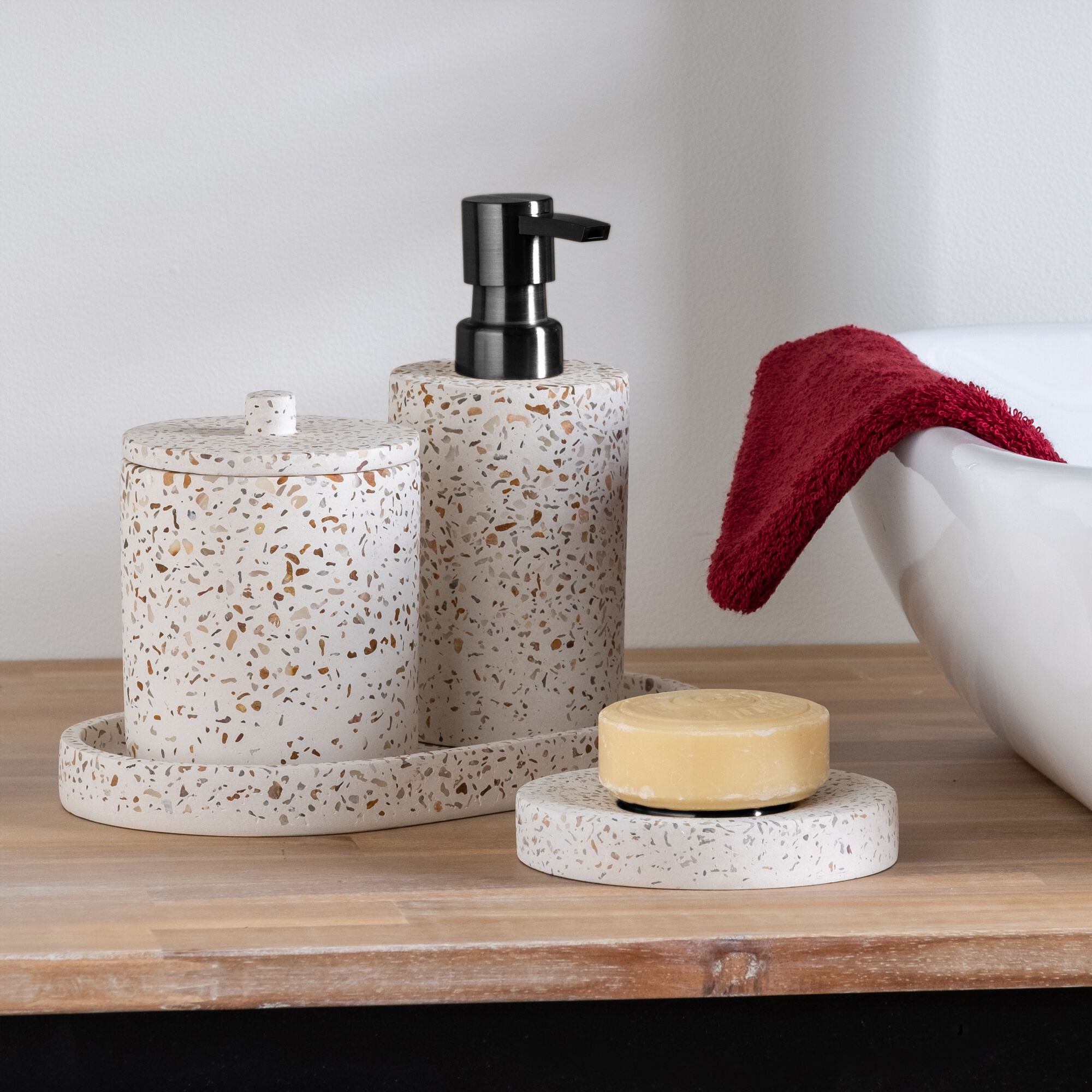 TERRAIO - Set de salle de bain en terrazzo - blanc