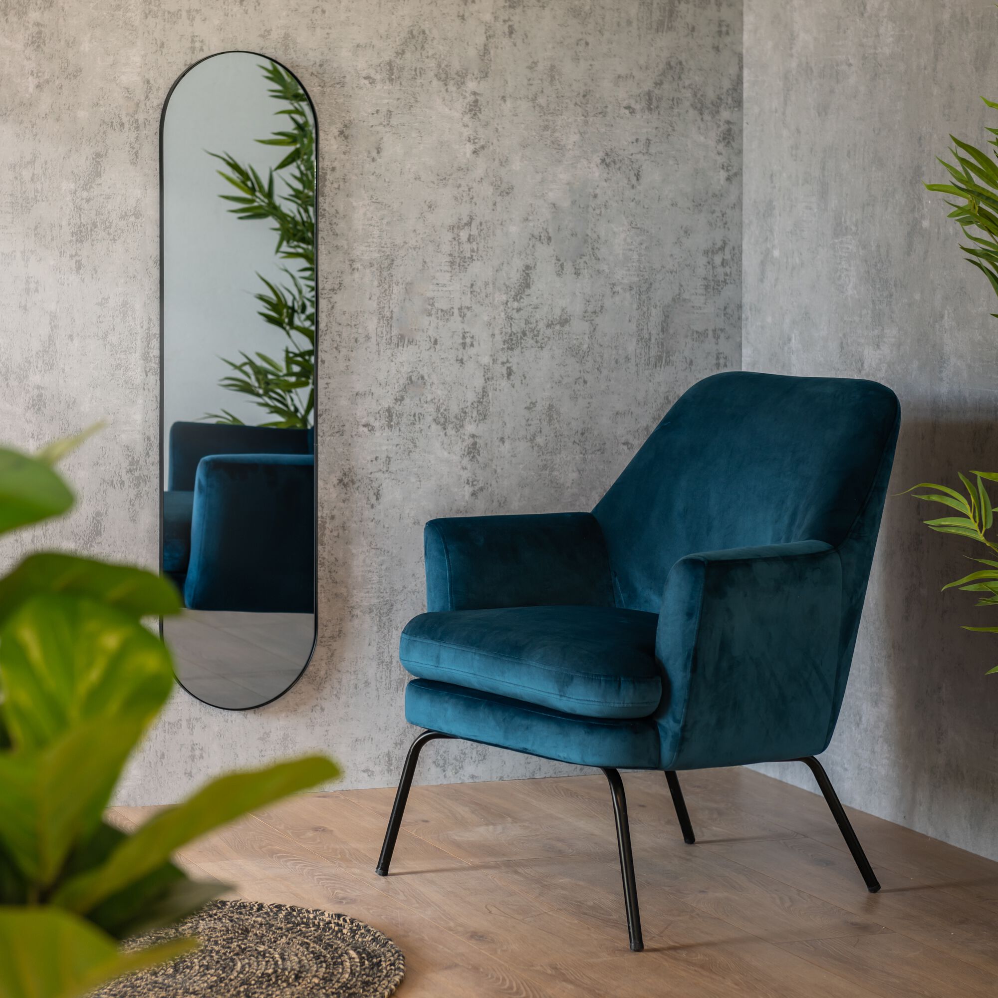 ARSENE - Miroir ovale en métal reflets bleutés - noir 30x120cm