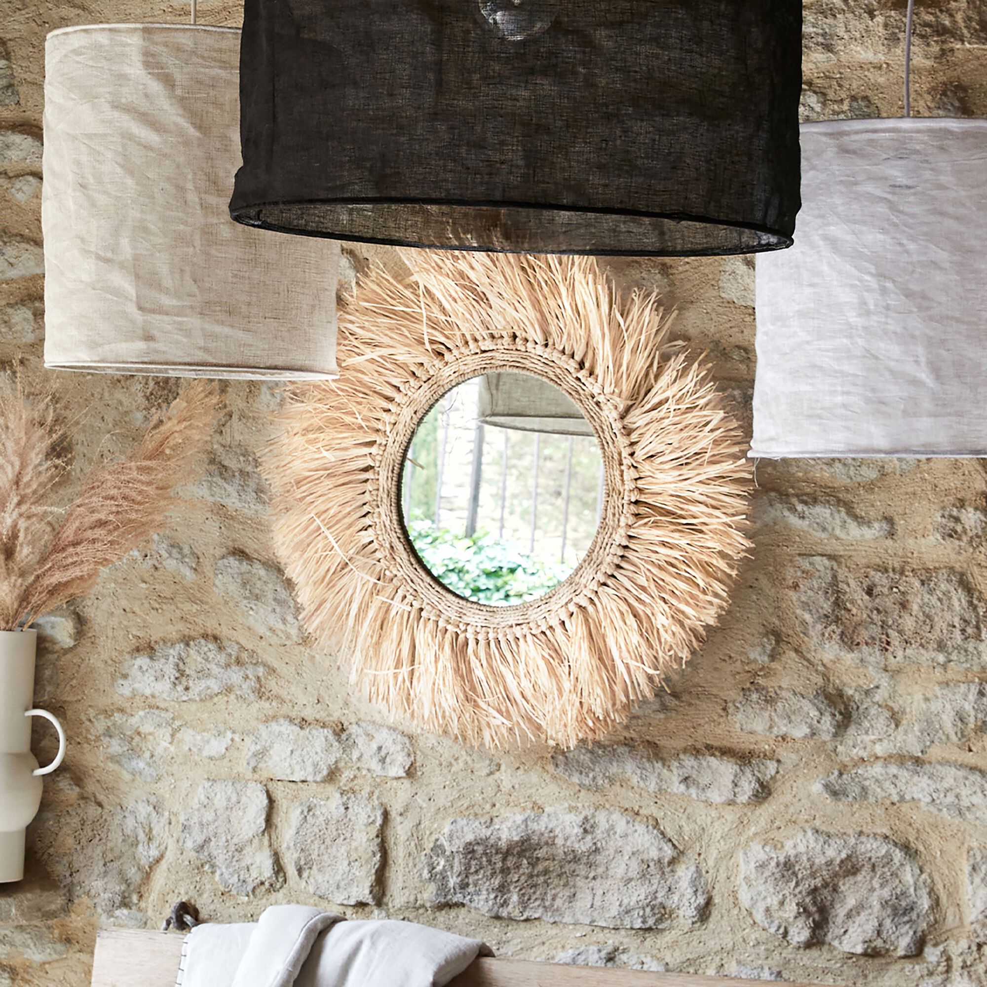 OLEO - Miroir mural frange raphia D35cm - naturel