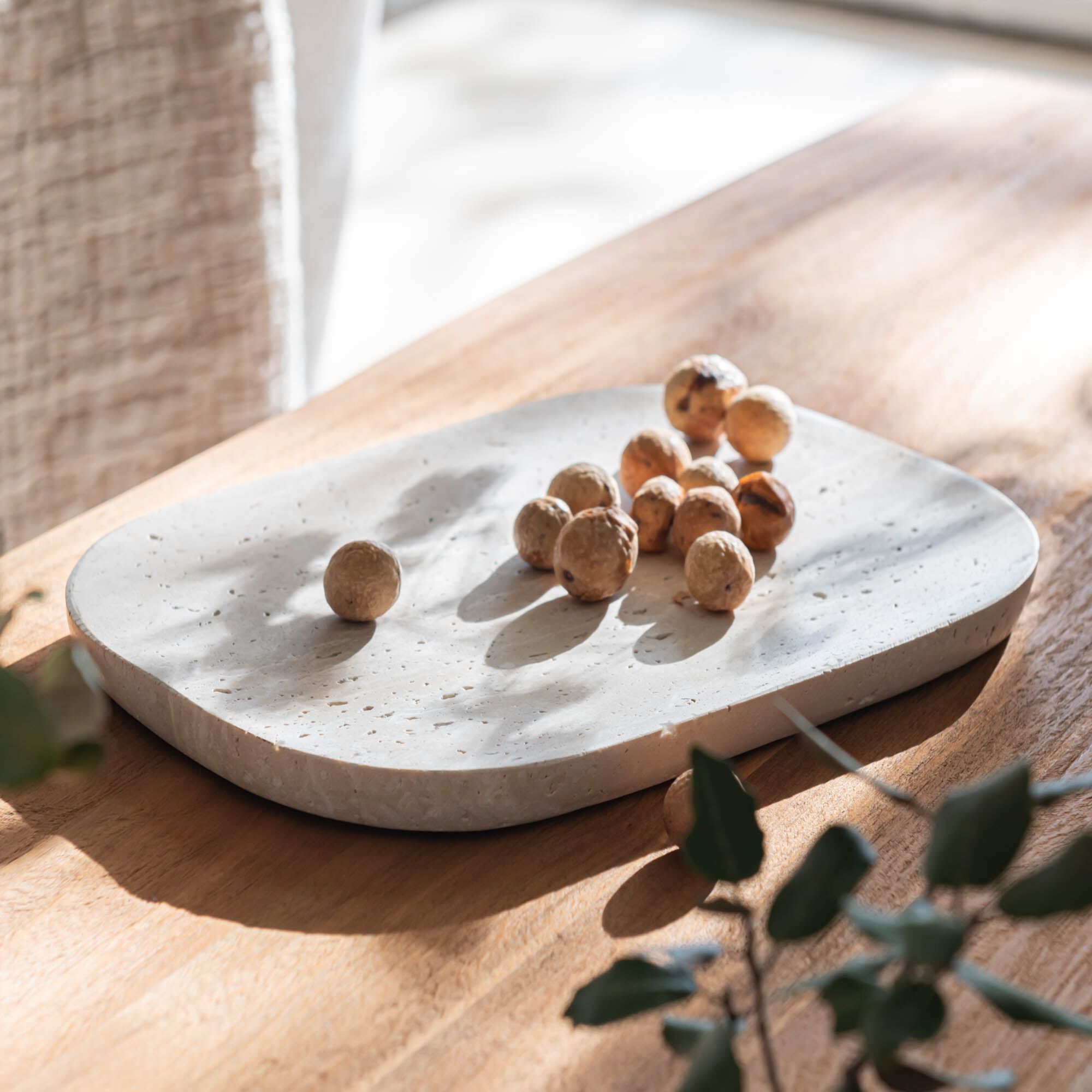KORNEL - Plateau déco en travertin 25x18cm - beige