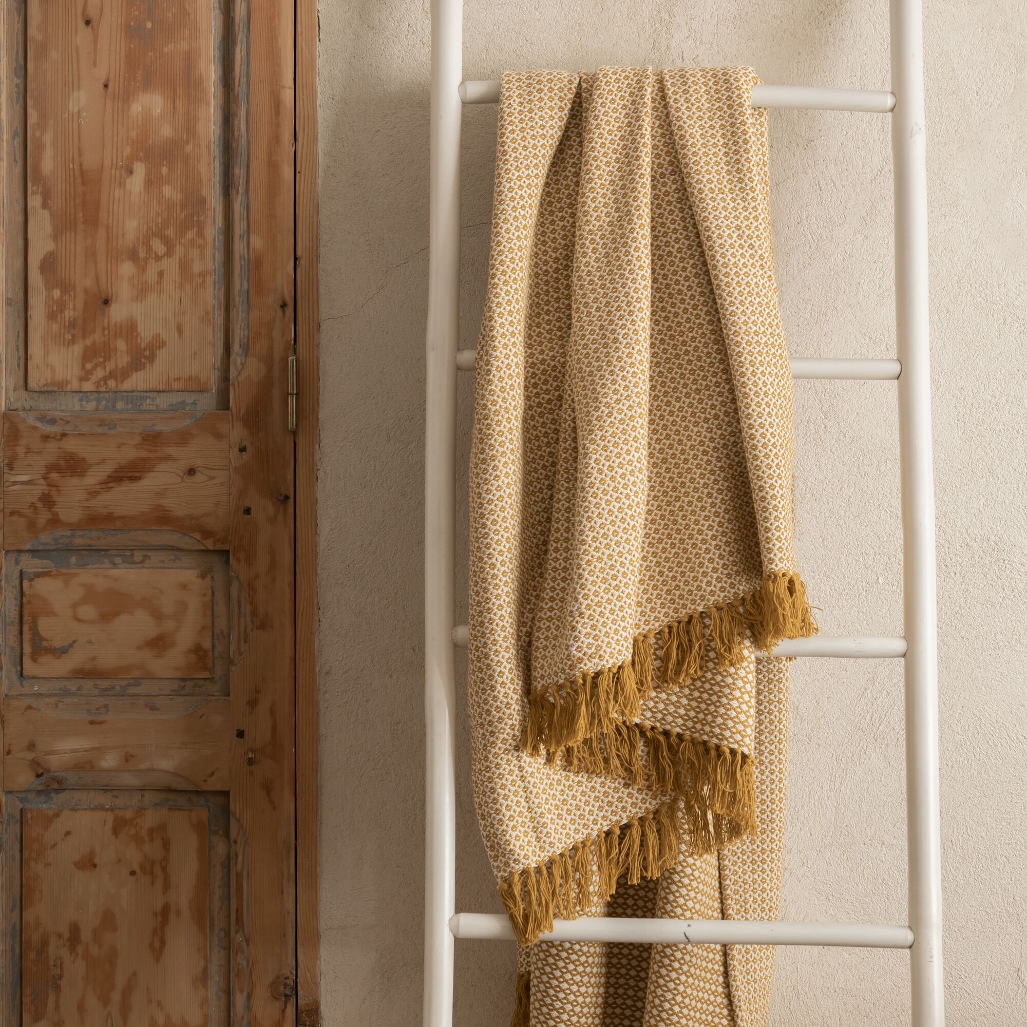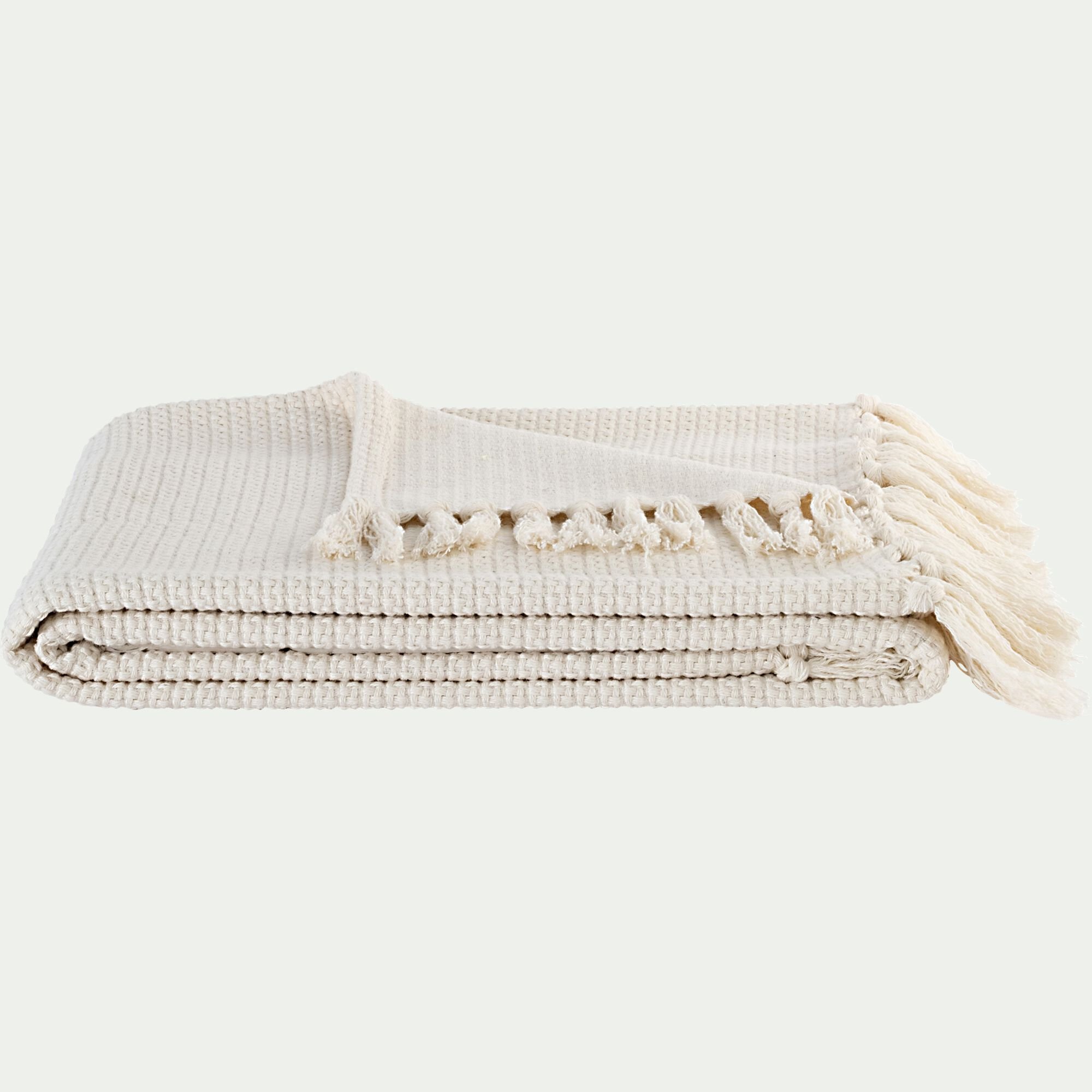PARA - Plaid à franges et motifs en coton - beige 130x170cm