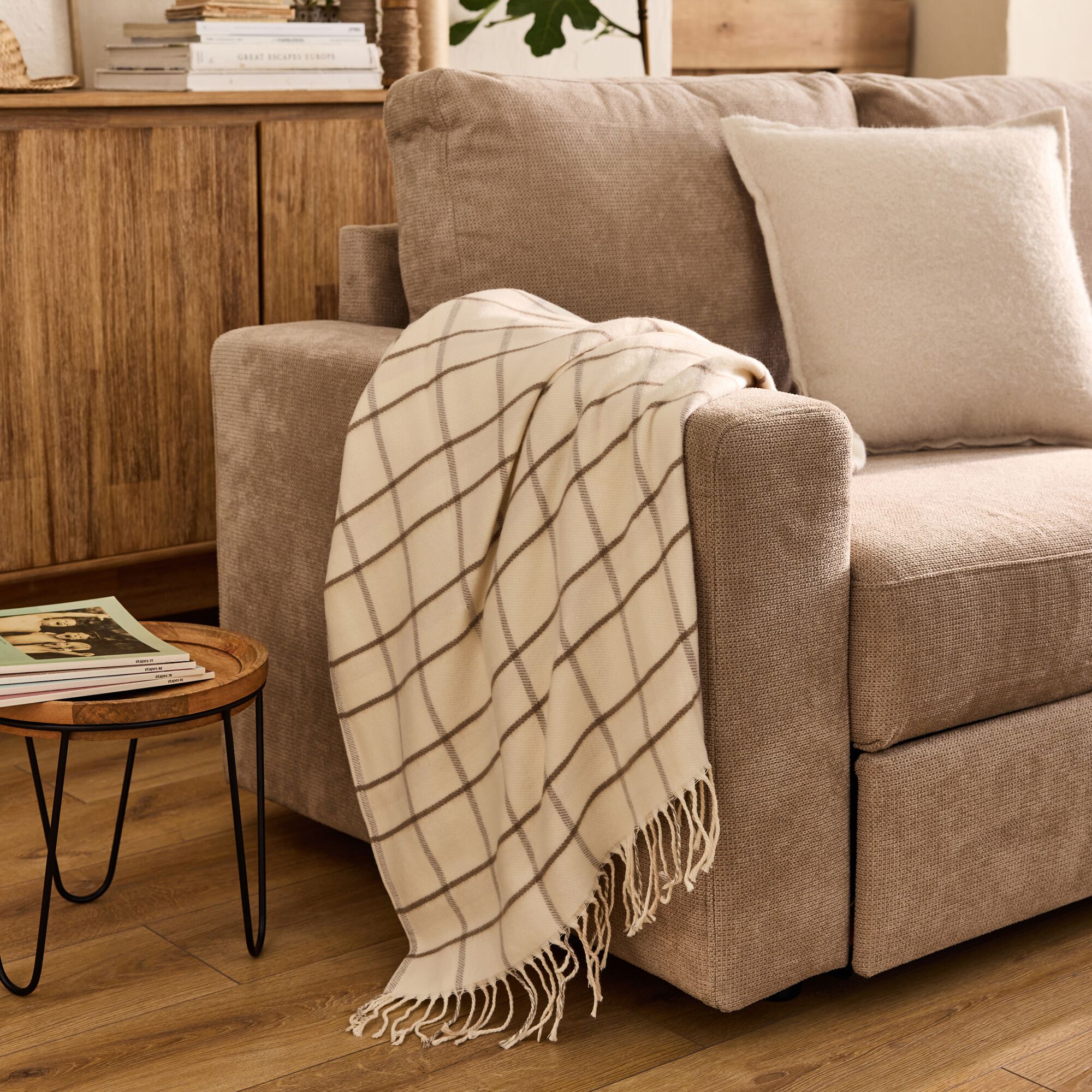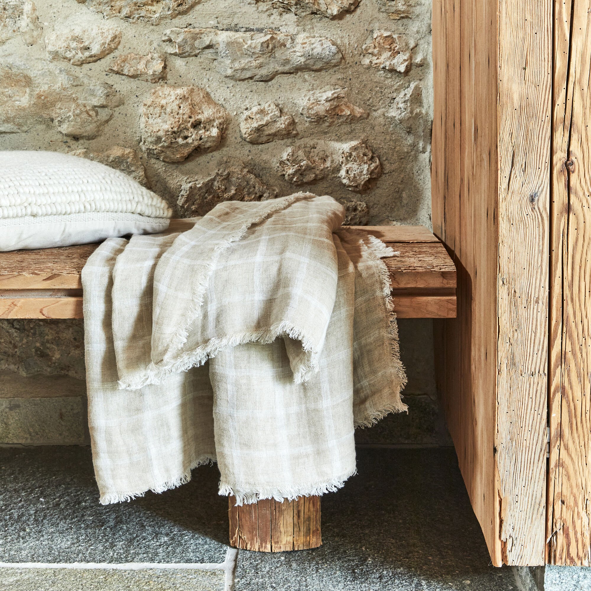 VALBEL - Plaid à carreaux en lin lavé 130x170cm - beige