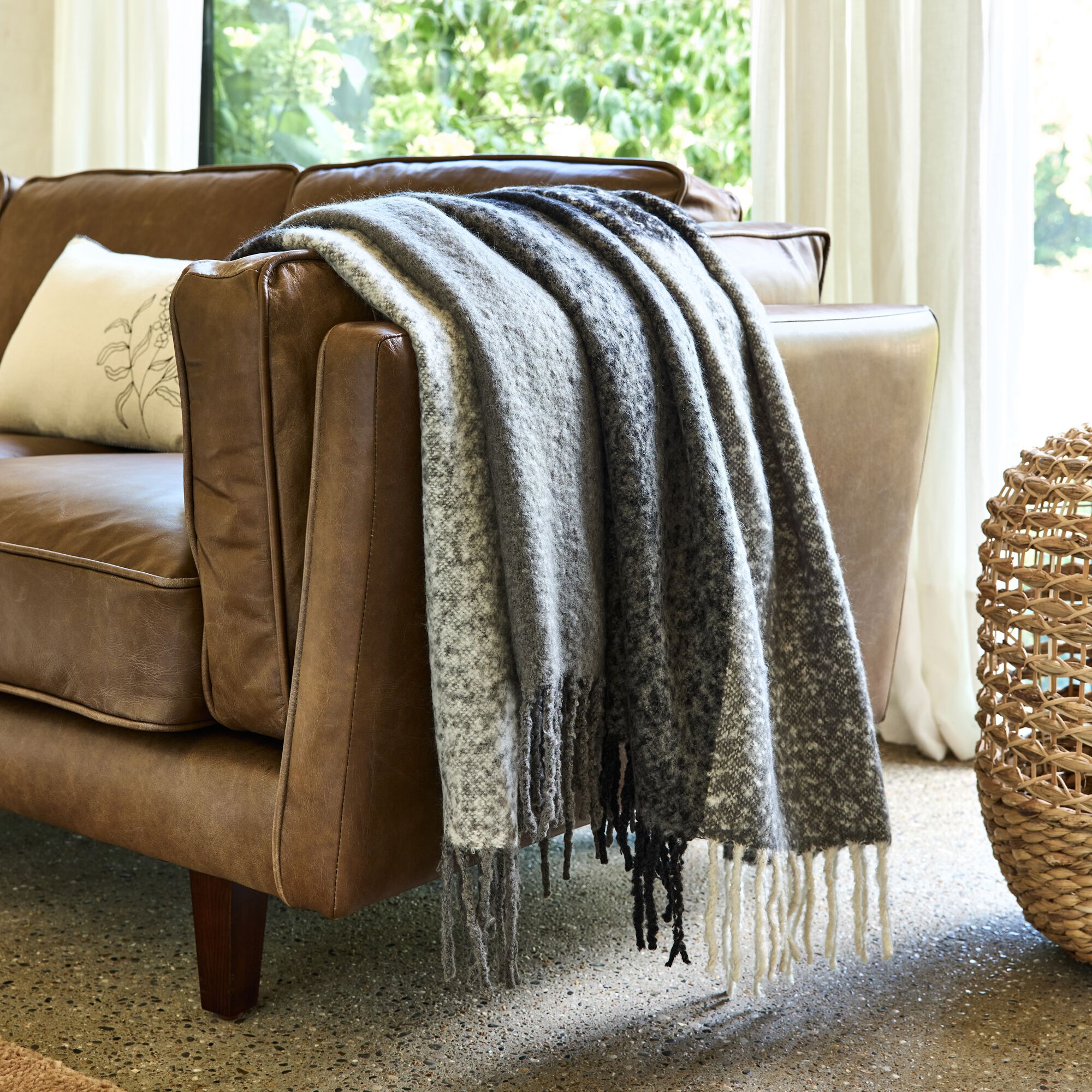 LENOS - Plaid à franges en laine 130x170cm - blanc écru