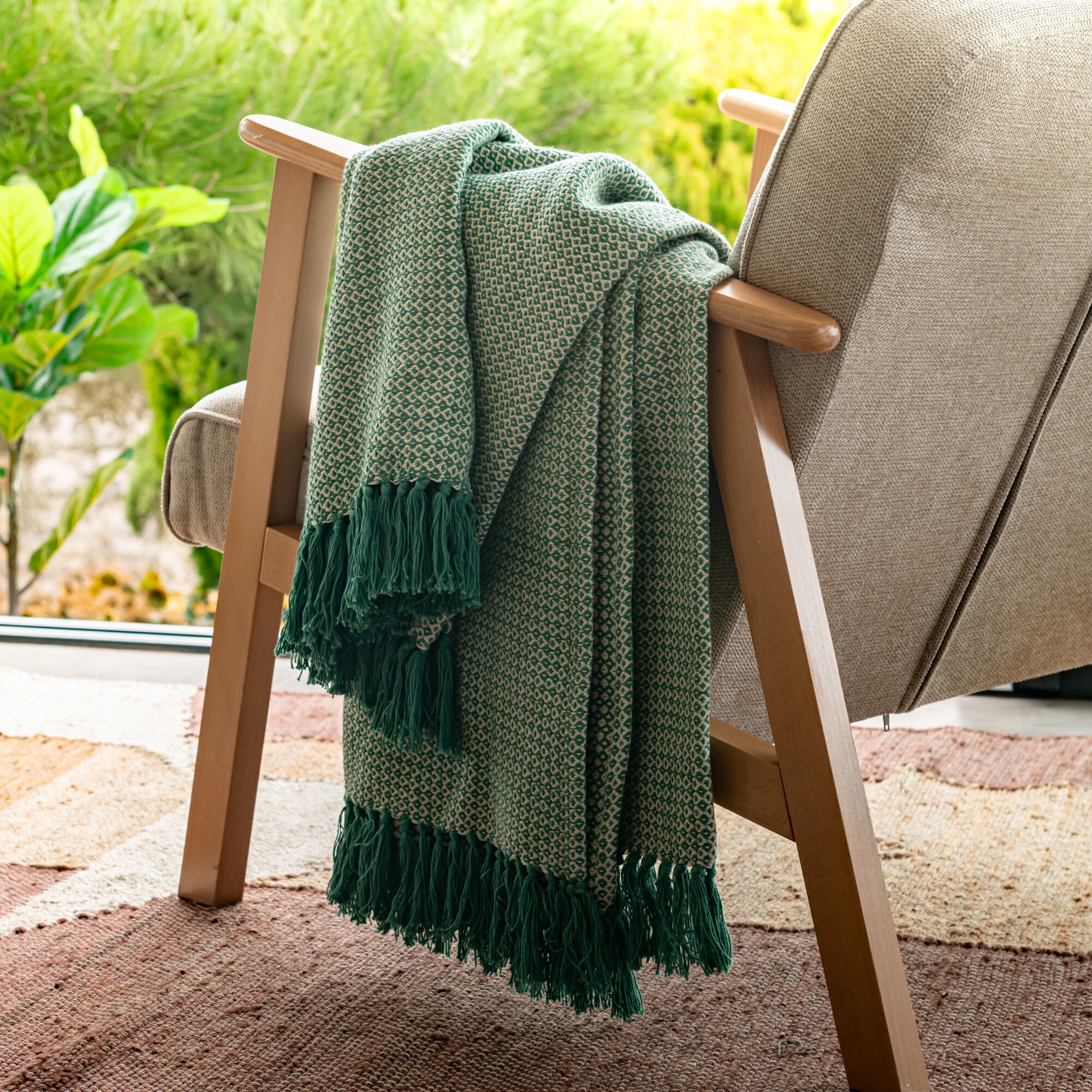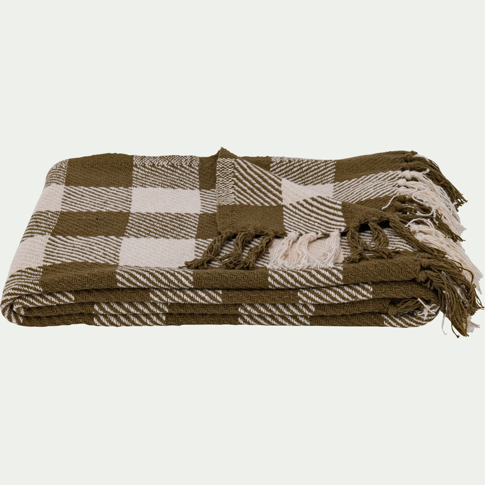 PARA - Plaid à franges et motif en coton - vert 130X170cm