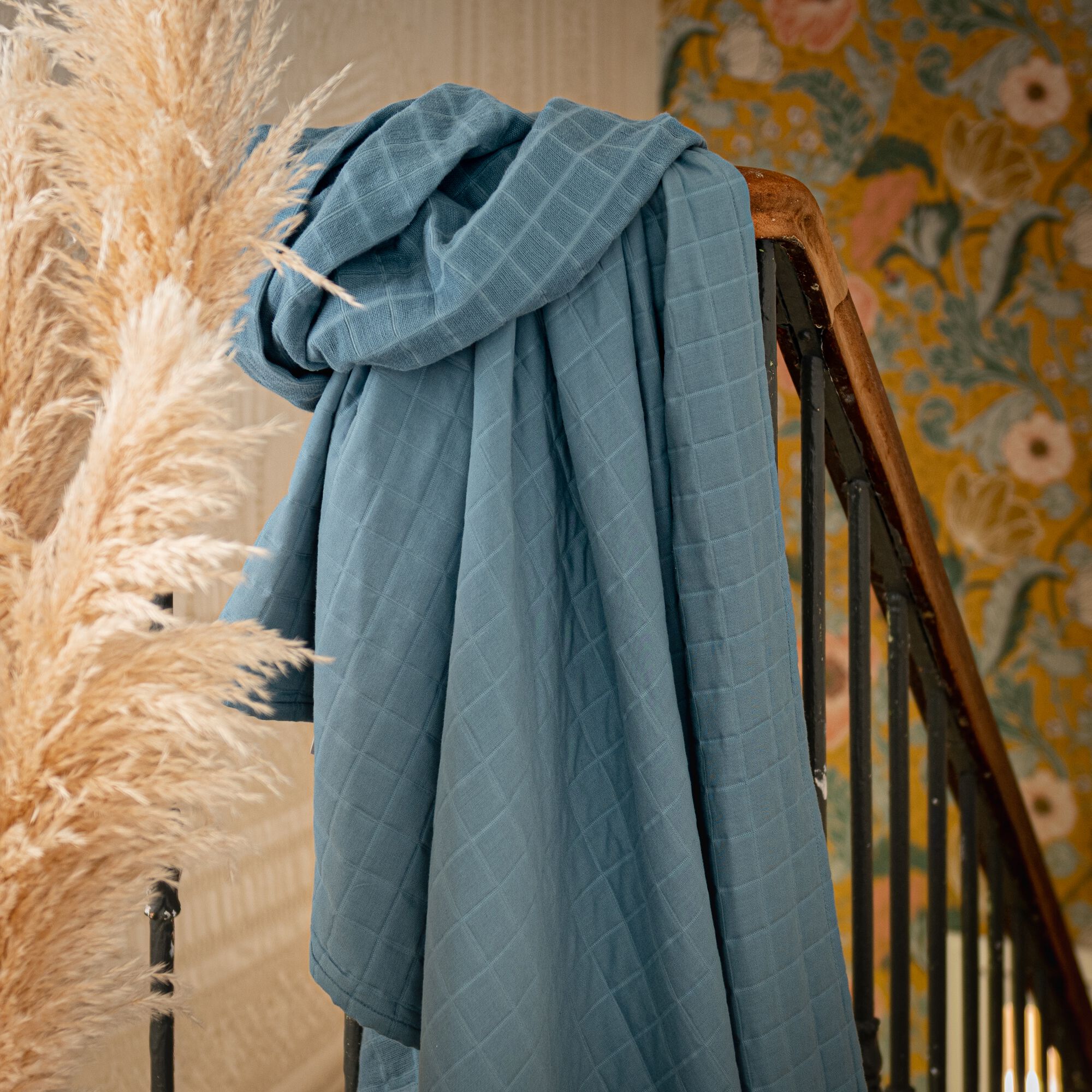 TESSALY - Couvre-lit en gaze de coton - bleu céou 230x250cm