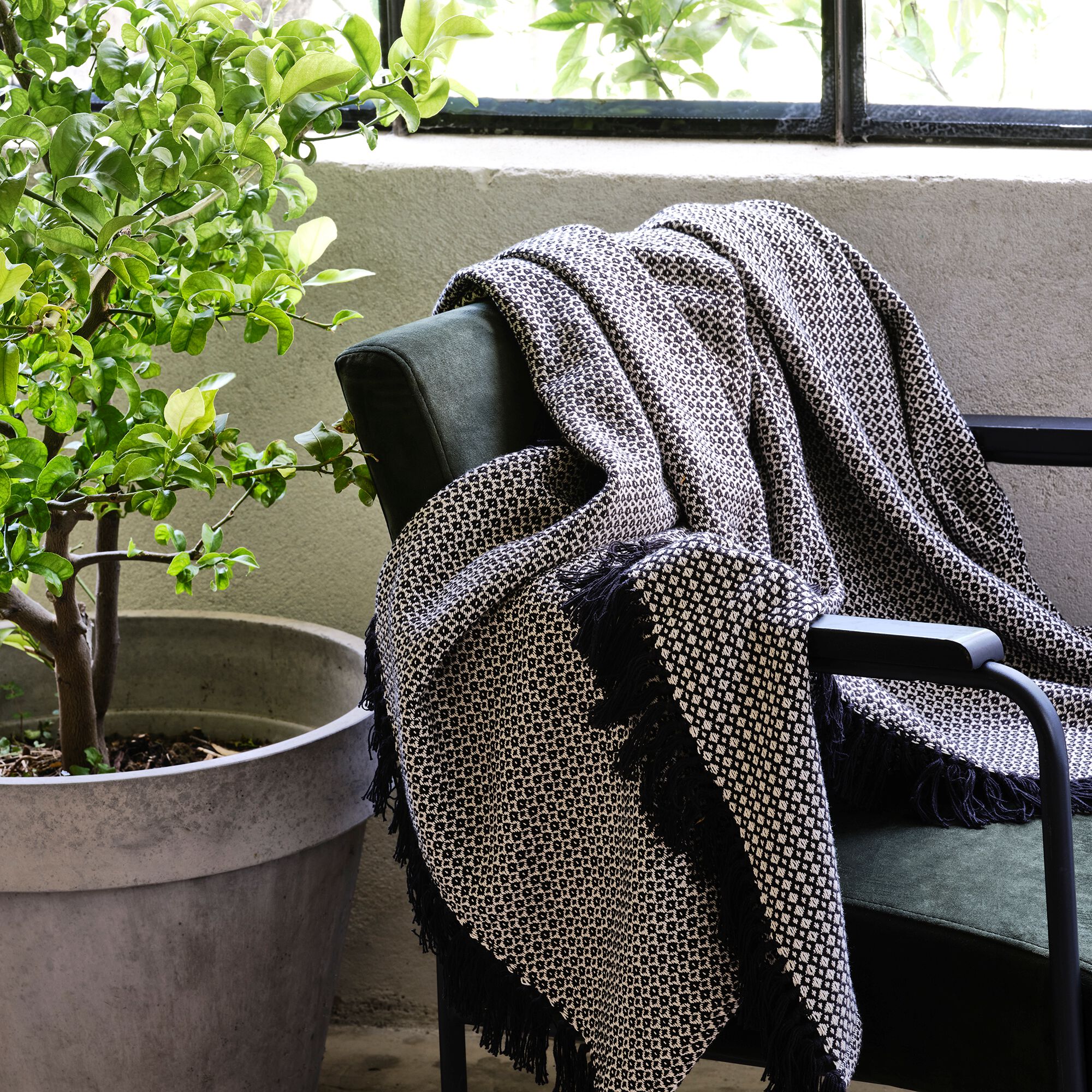PARA - Plaid à franges et motifs en coton - noir 130x170cm