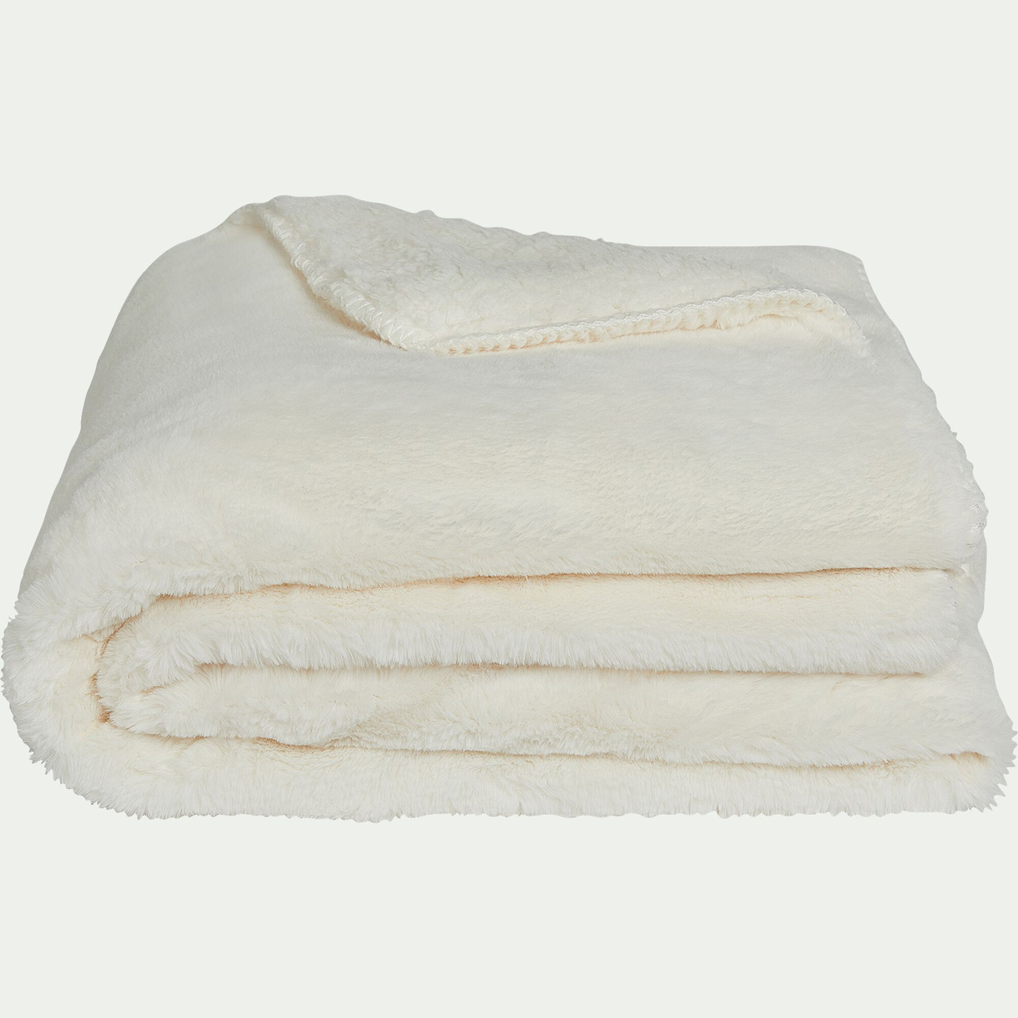 MARIUS - Couvre lit imitation fourrure - blanc ventoux 180x220cm
