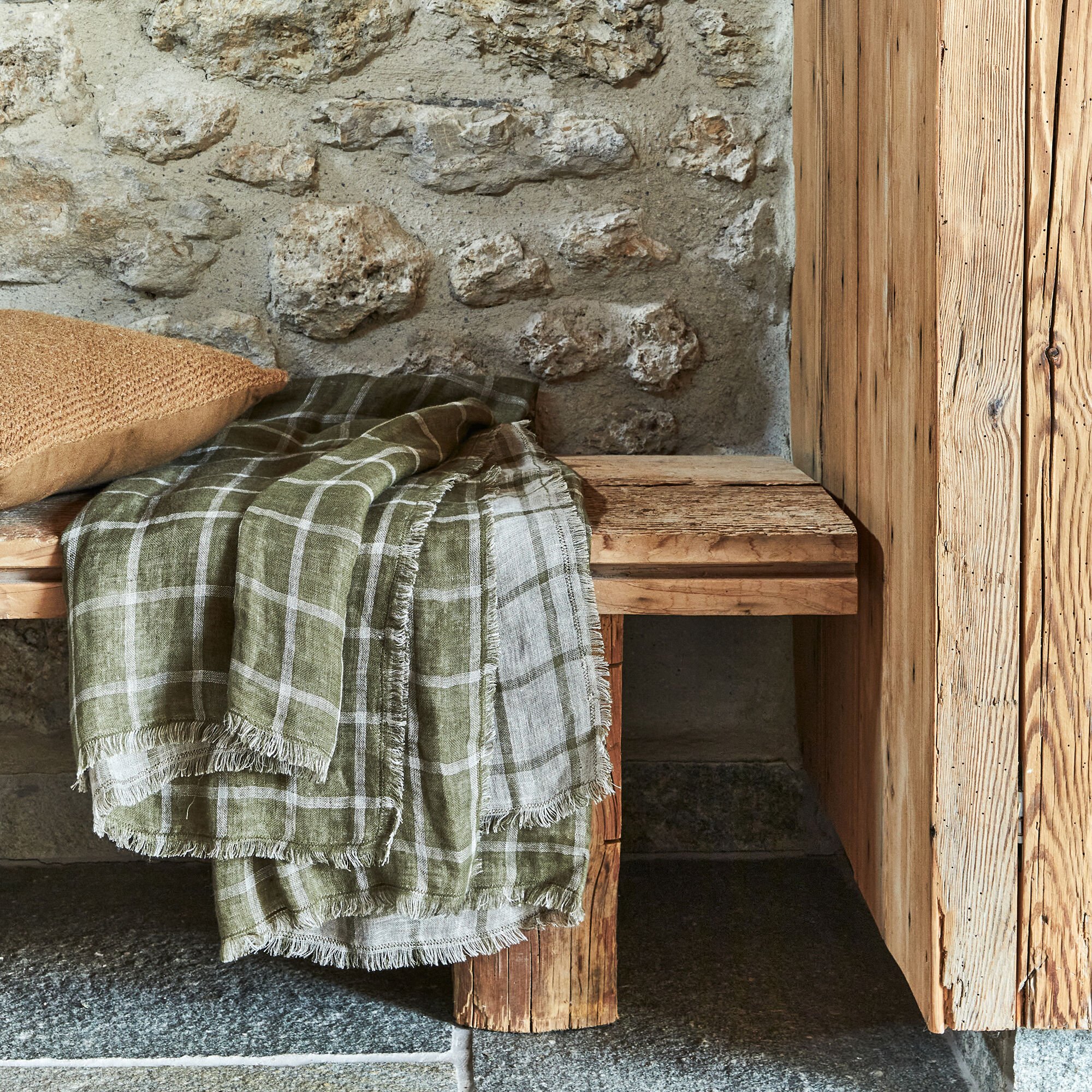VALBEL - Plaid à carreaux en lin lavé 130x170cm - vert