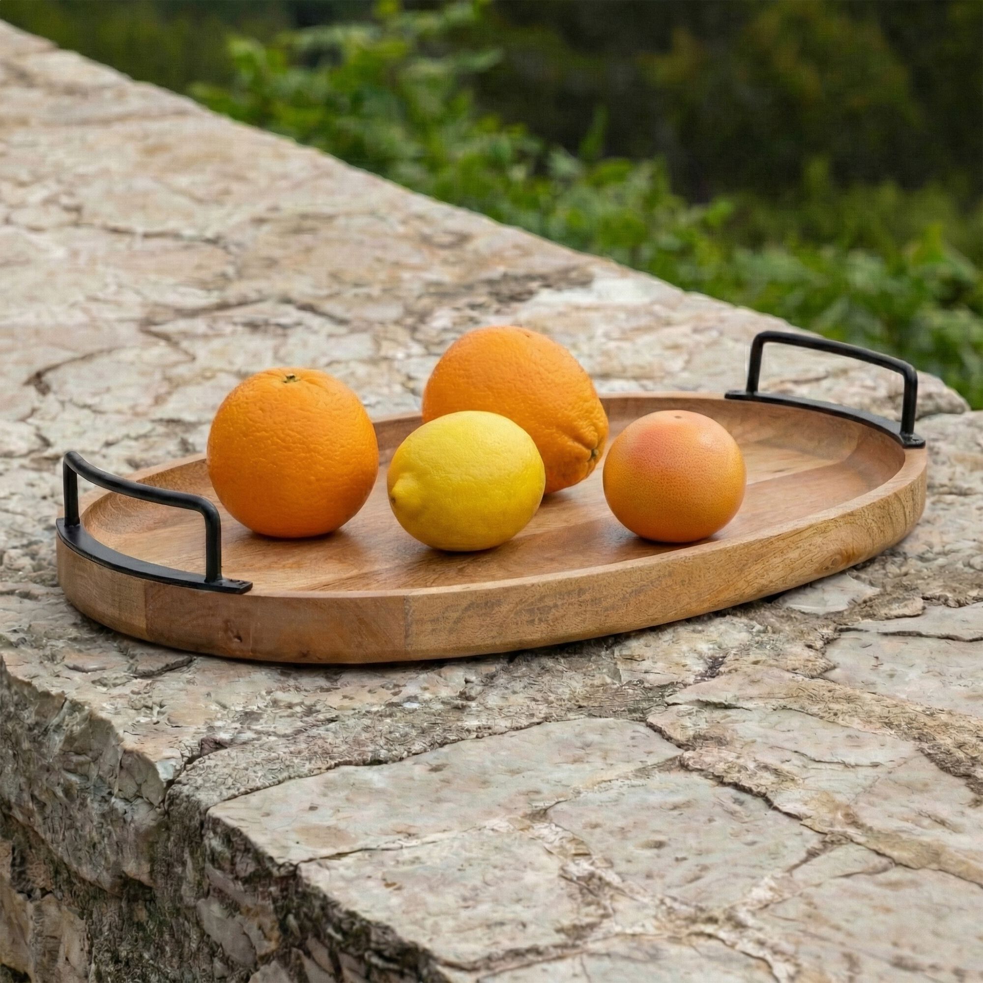 AMALFI - Plateau en manguier et en métal 45x30cm - naturel