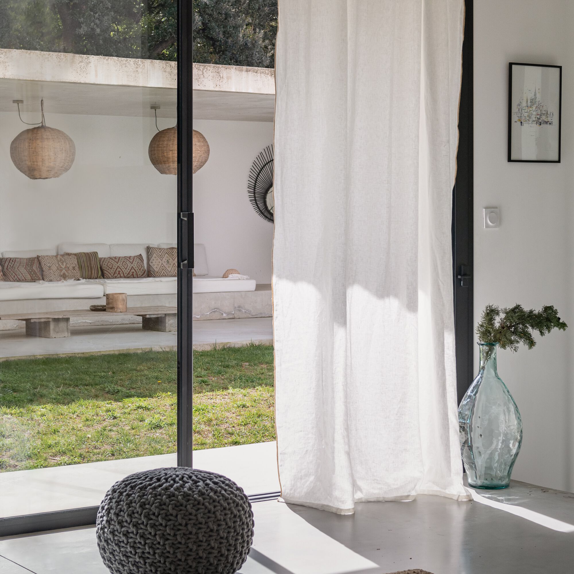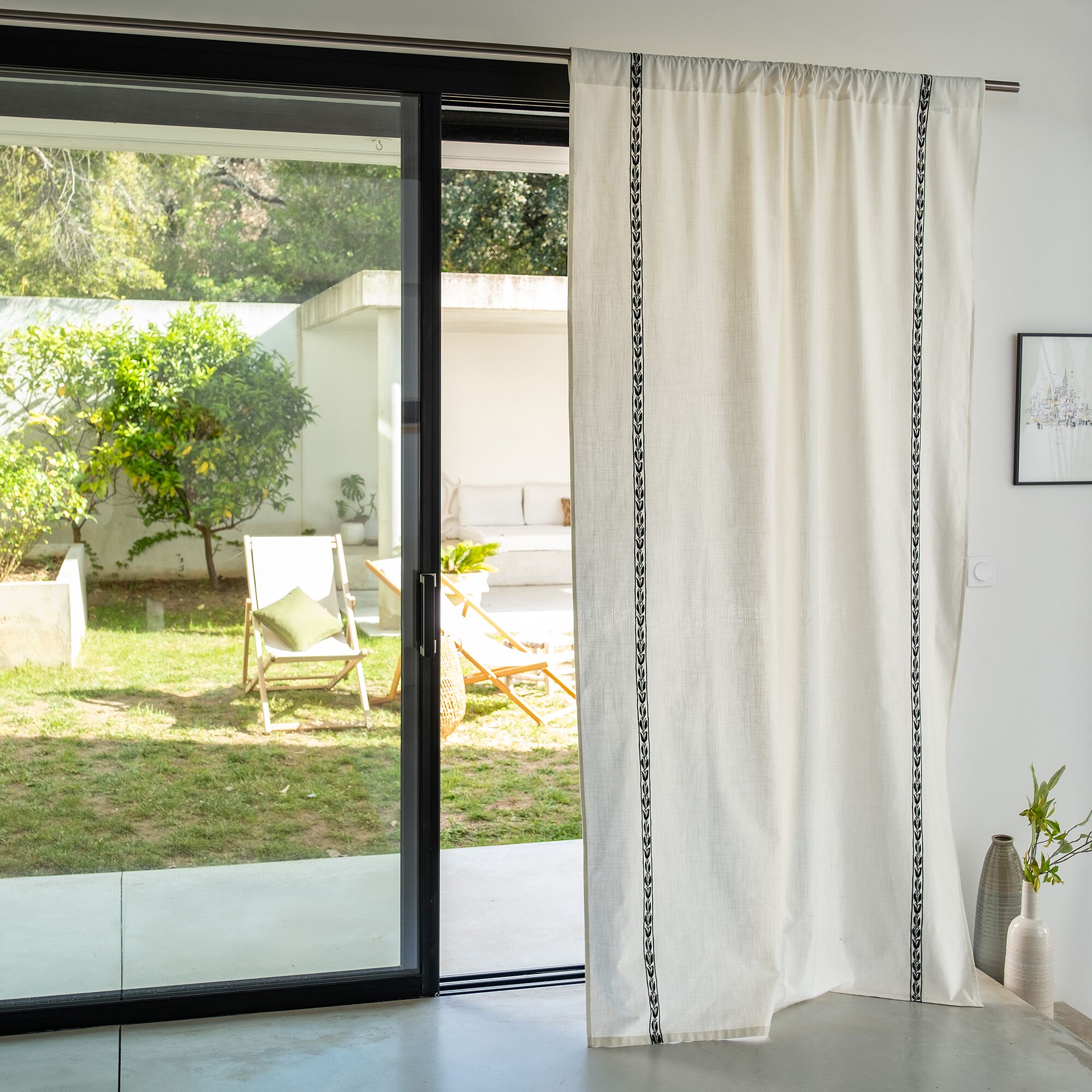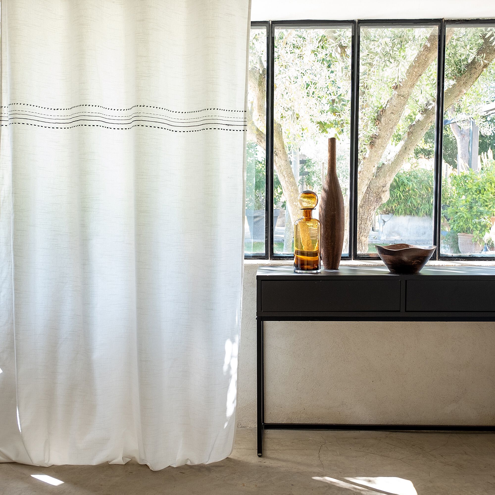Medine - Rideau à œillets en coton brodé 140x250cm - blanc