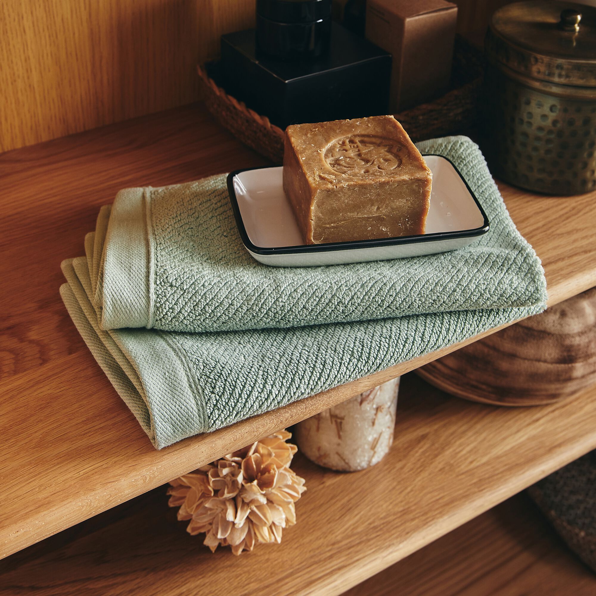 COLINE - Lot de 2 serviettes invités en bouclettes de coton bio 30x50cm - vert olivier