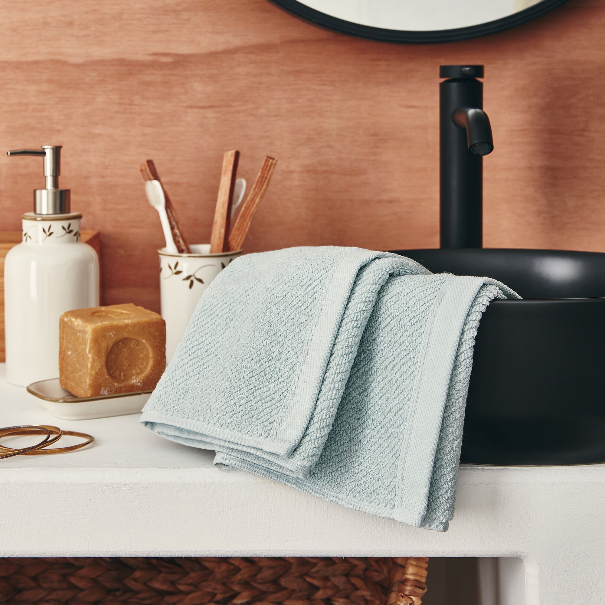 COLINE - Lot de 2 serviettes invités en bouclettes de coton bio - bleu 30x50cm