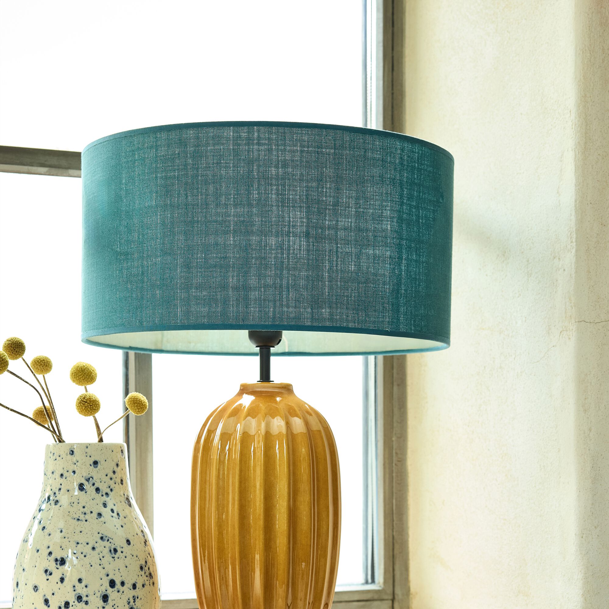 KASTELL - Abat-jour cylindrique en tissu D38cm - jaune miel