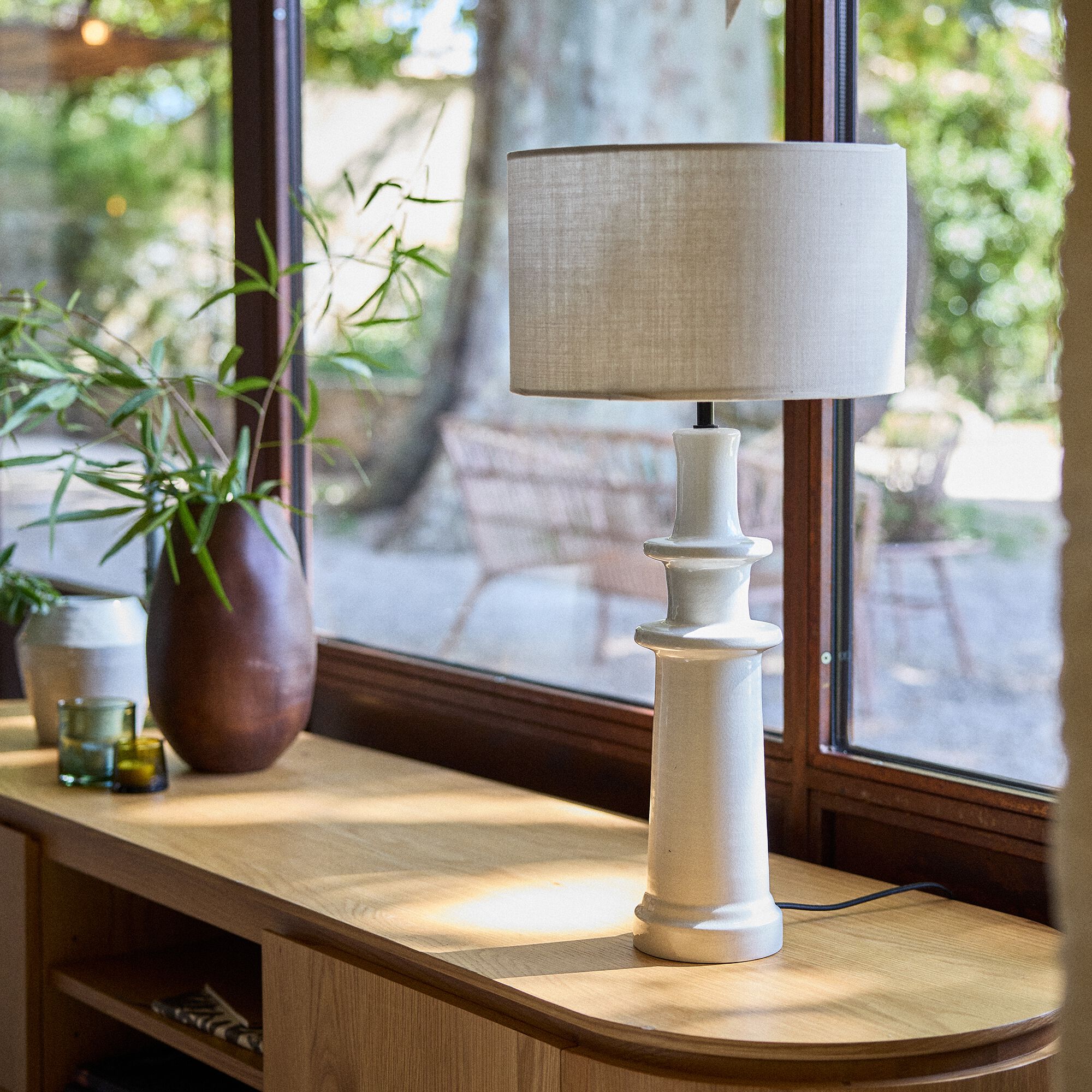 ORMES - Abat-jour cylindrique en lin D35cm - blanc