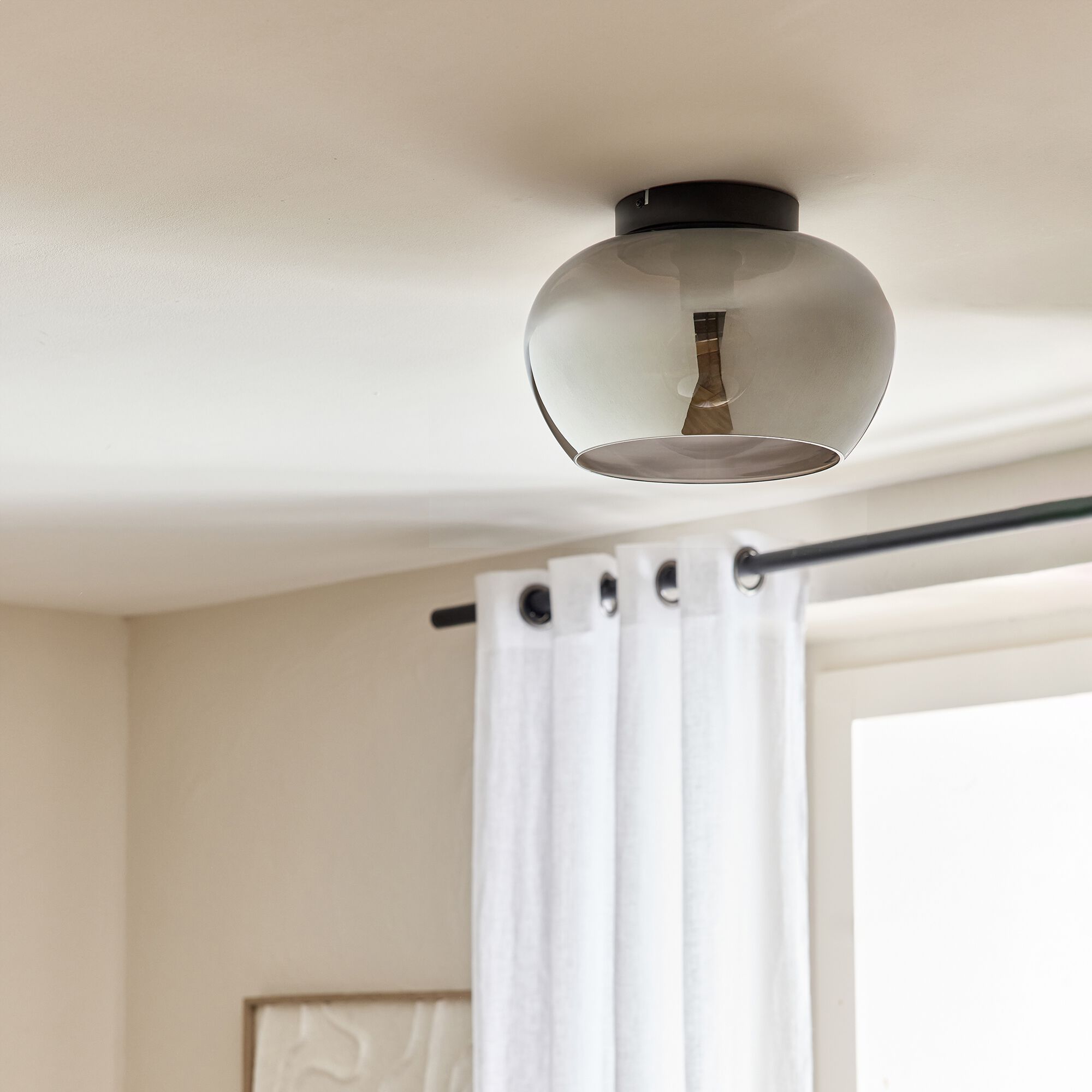 JUDI - Plafonnier électrifié en verre fumé D30,5cm - noir