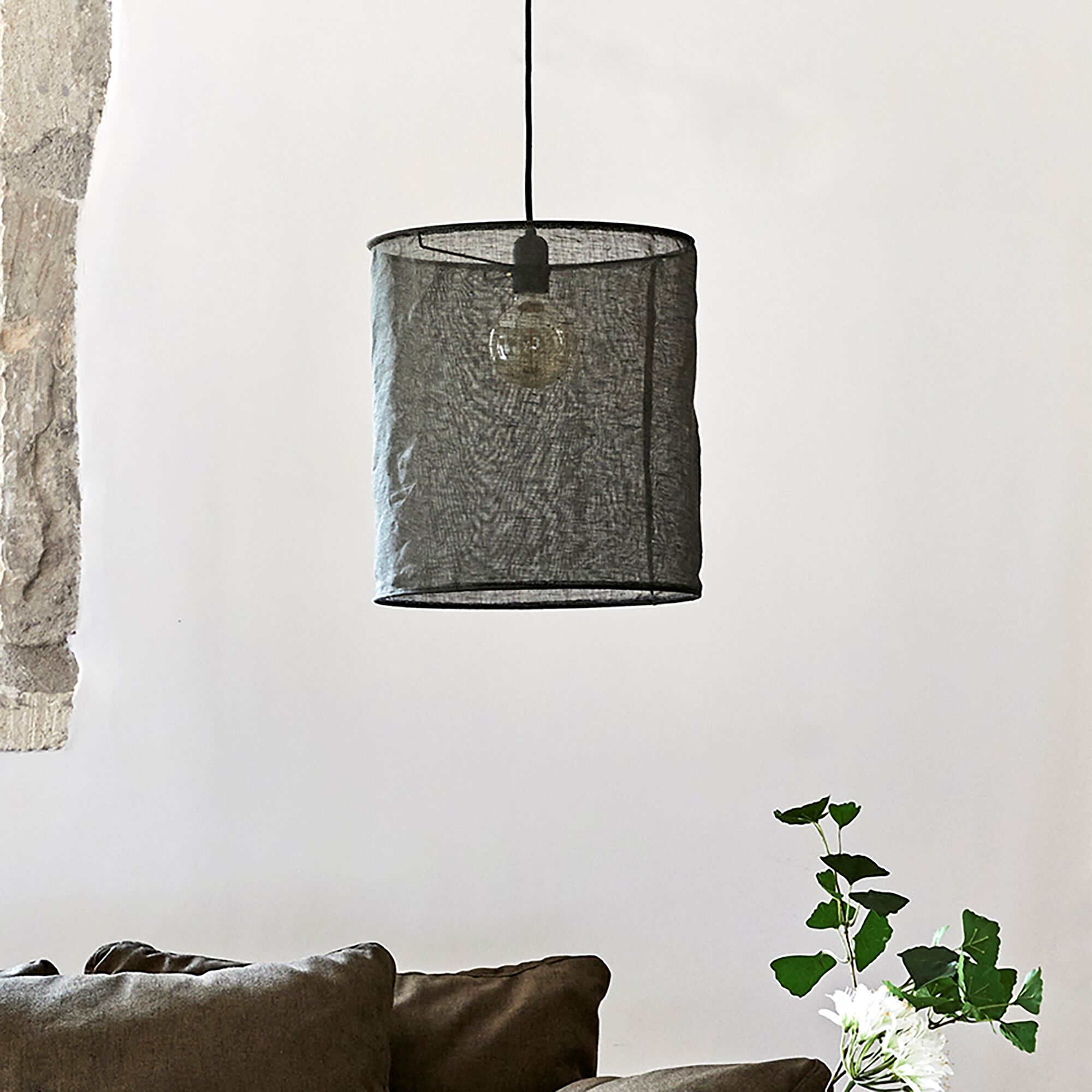 ORMES - Abat-jour cylindrique en lin D35cm -noir