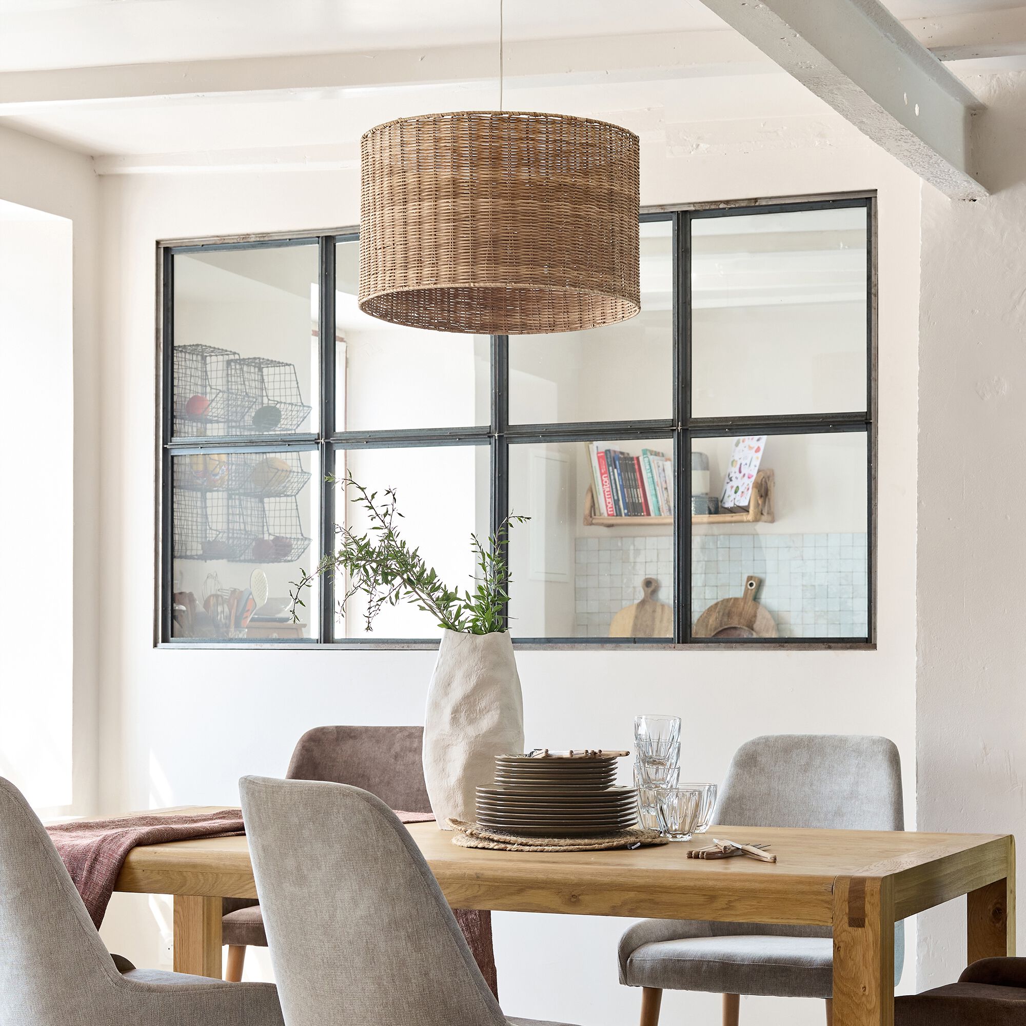 TIPA - Abat-jour en lin et cannage D50cm - blanc