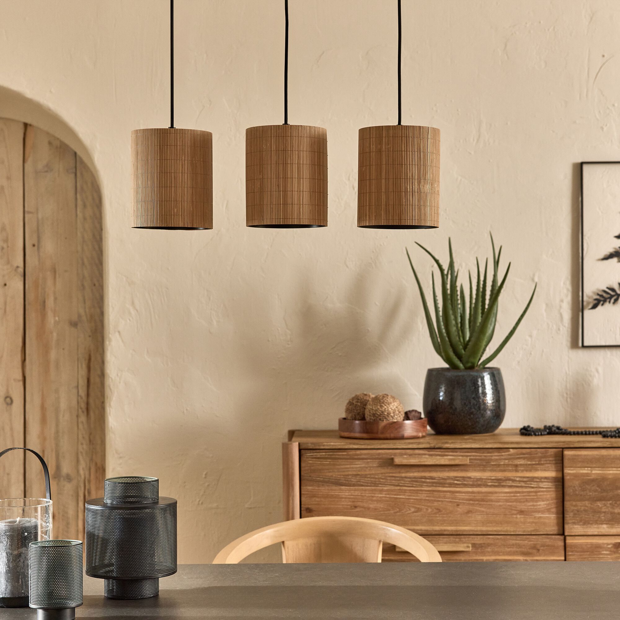 PIANA - Suspension électrifiée triple en bambou L61cm - naturel