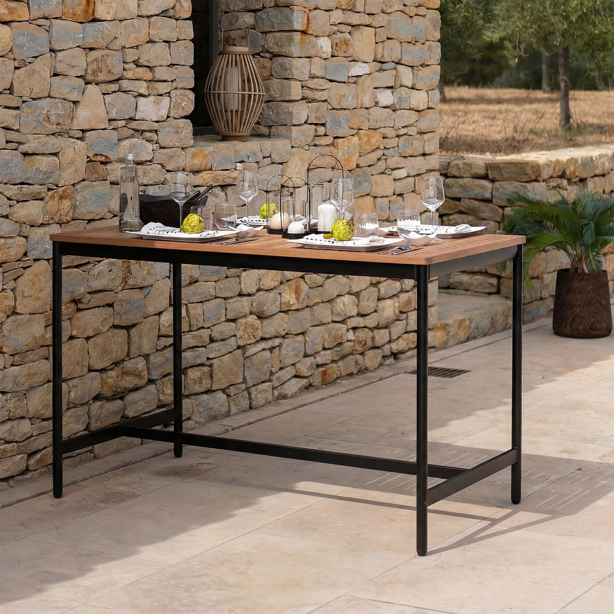 LARI - Table haute de repas jardin en eucalyptus - bois clair (6 places)