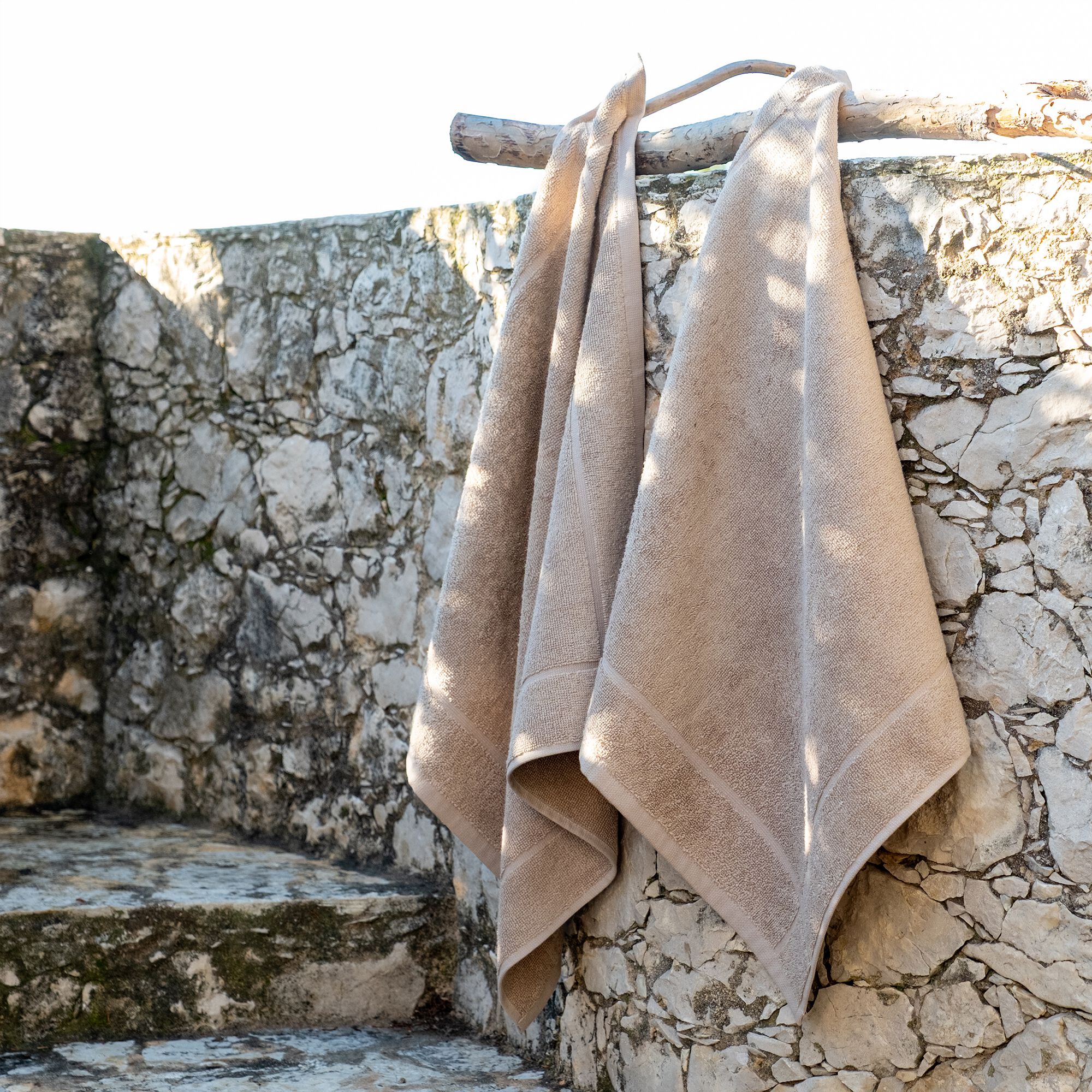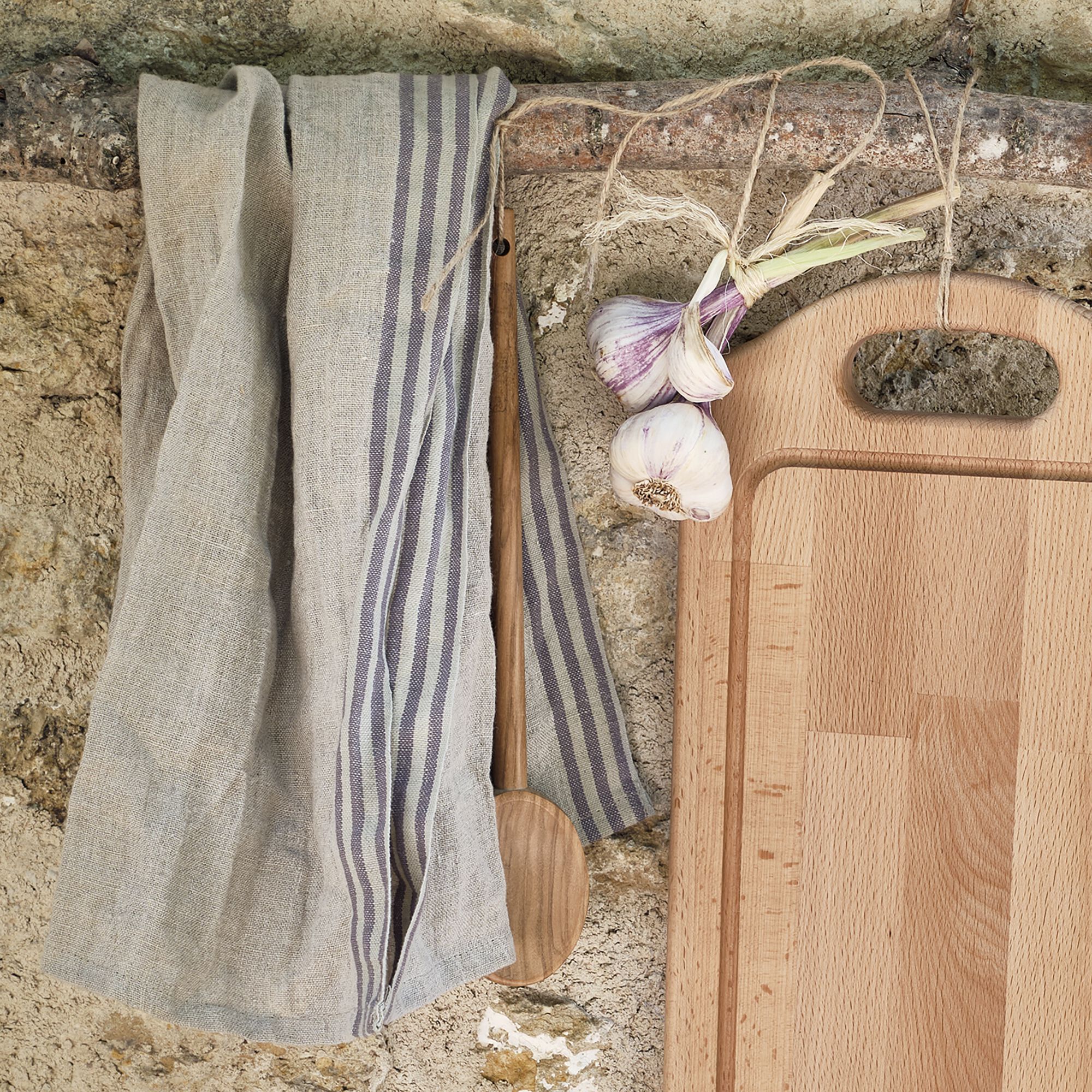 SANTIN - Lot de 3 torchons en coton beige et bleu
