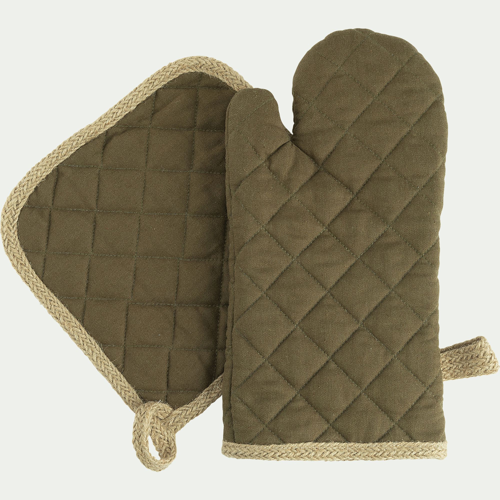 OCA - Lot de manique et gant de cuisine - vert garrigue