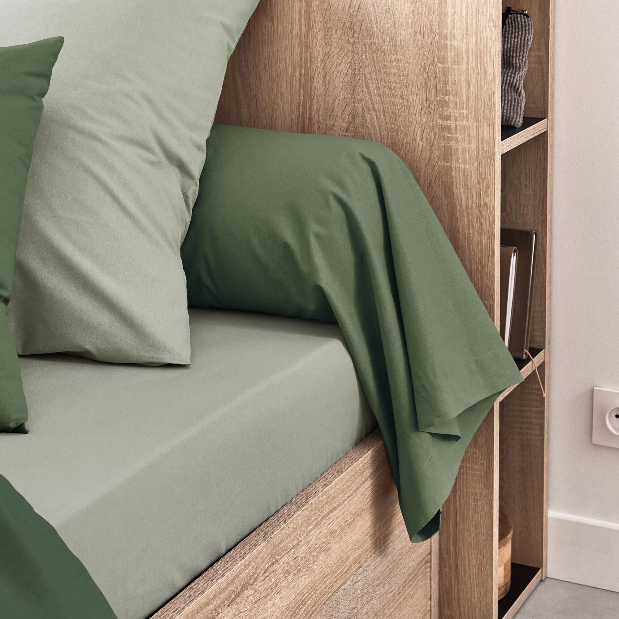 EOLI - Taie de traversin en coton 43x190cm - vert cèdre